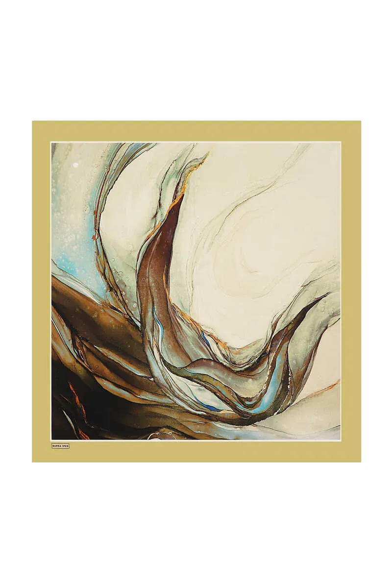 The Asit Yeşil Granit Desen Sura İpek Eşarp is a silk scarf measuring 90×90 cm, made from 100% silk. It originates from Bursa, Turkey and is categorized under silk scarves.
