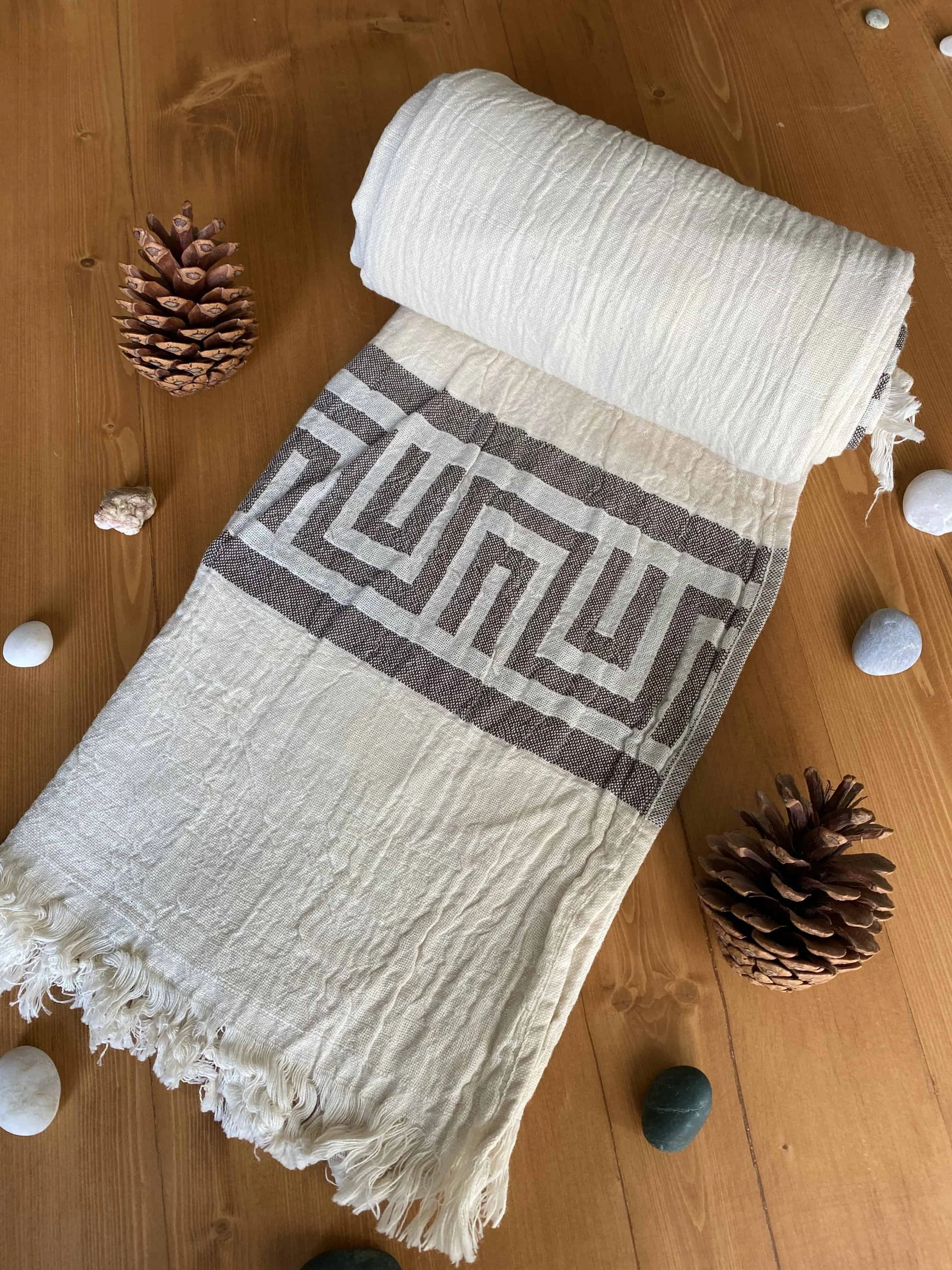 The fringes are all hand tied with exposed threads adding to the heirloom appeal of this towel. Our peshtemals are super absorbent and so soft to be used as a bath towel. Its natural texture and elegant look would also make it your favorite throw on your couch. This truly is one of the most versatile pieces you could own