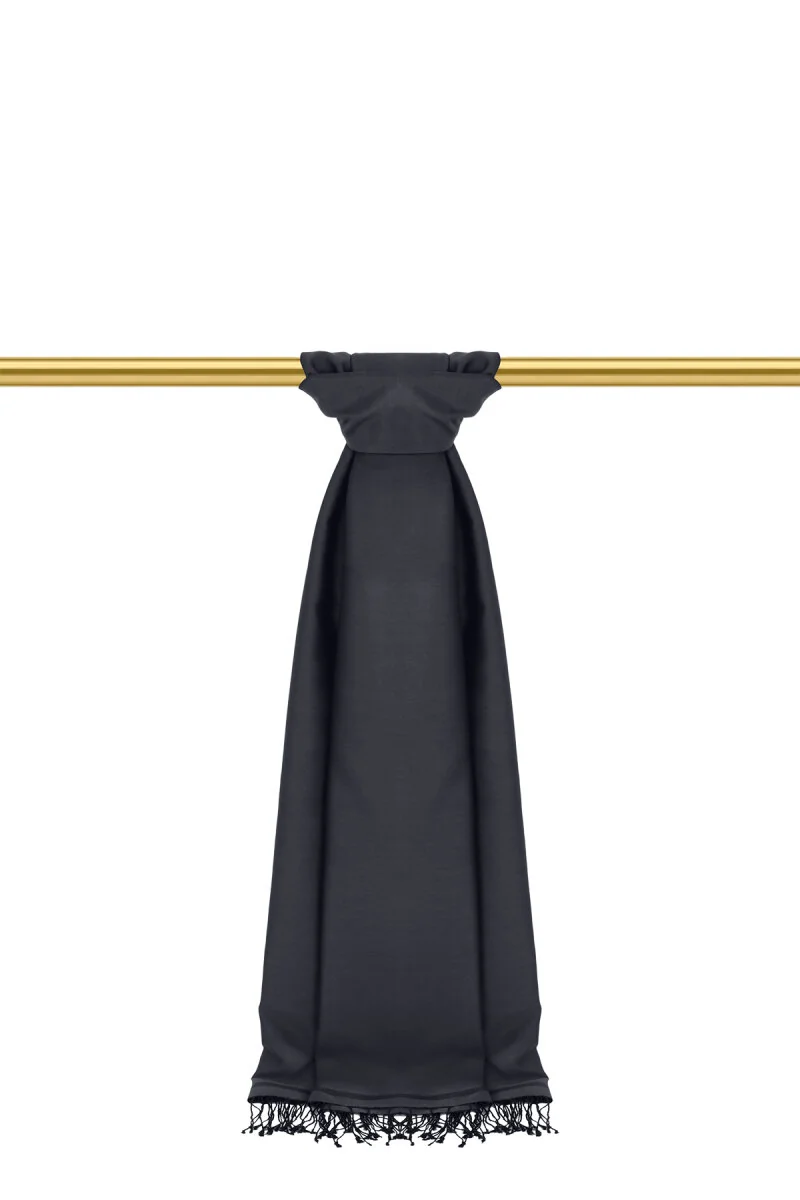 This anthracite black double-sided silk shawl complements both classic and casual styles. It features a firm structure and a shiny appearance, adding value to your wardrobe. Crafted from 100% silk, it offers comfort with its dimensions of 70x200cm. Originating from Bursa, Turkey, this versatile accessory can be used on either side.