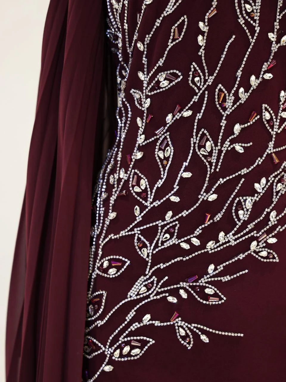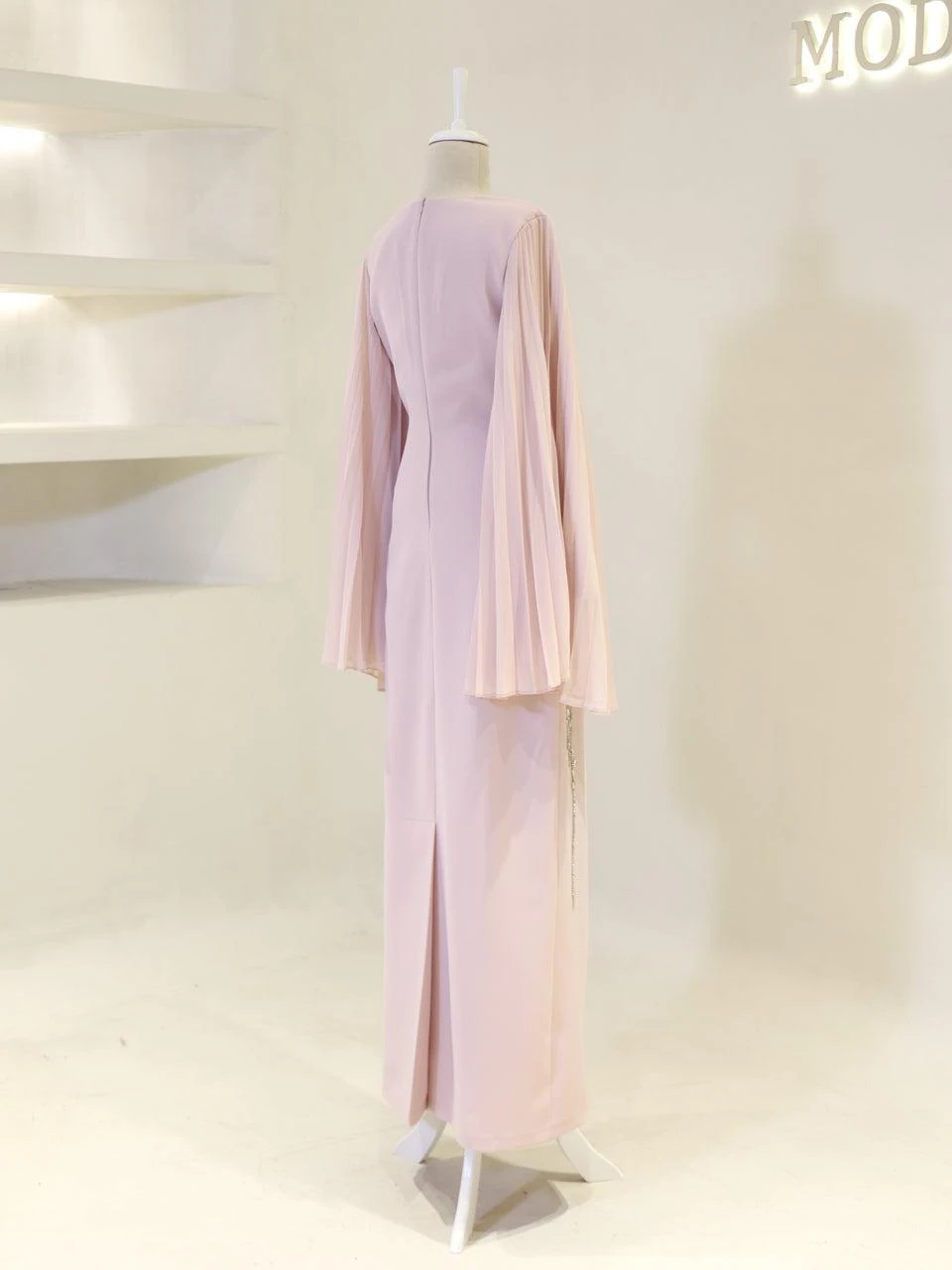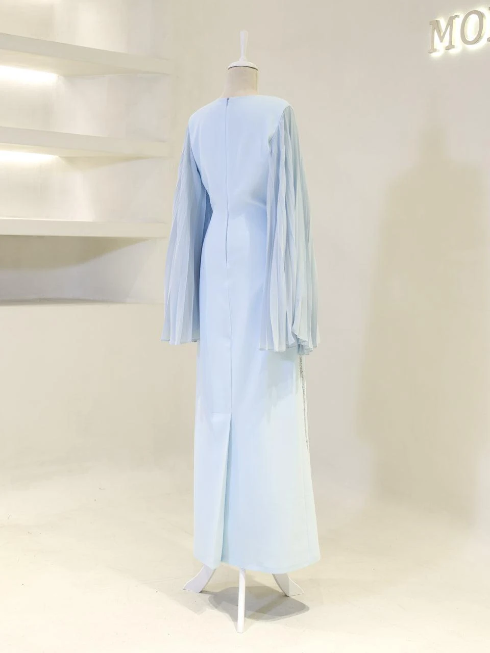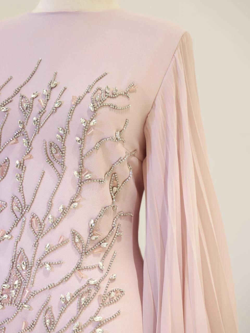The Baire Modest Evening Dress features a full-length design measuring 150 cm. Made from crepe fabric, this dress is lined and includes a back zipper for easy wear. The Spanish sleeves and pencil skirt form add a touch of elegance. Please note, due to the adhesive nature of the embellishments, some may detach over time, but this will not significantly affect the dress’s overall appearance.