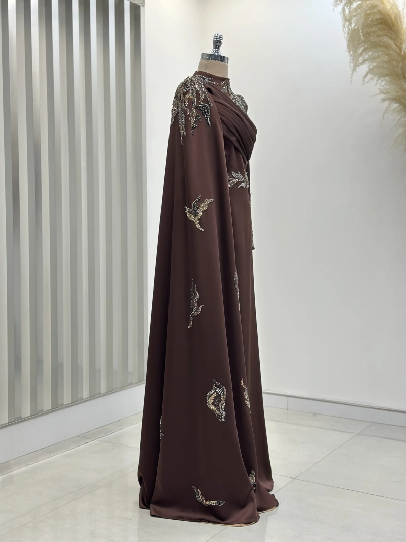 Available in rich, earthy tones like chocolate mocha, this design speaks to women who appreciate bold simplicity and timeless style — perfect for modest wardrobes that embrace modern design cues.