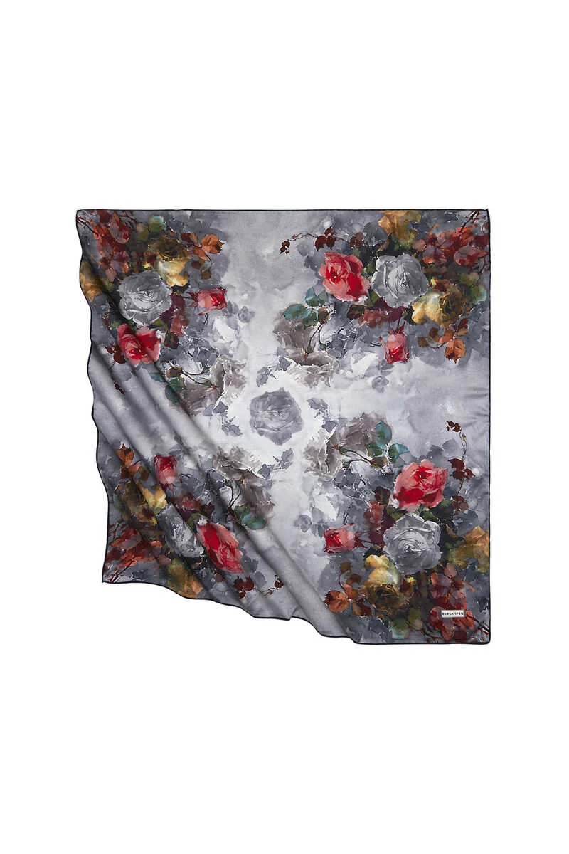 This scarf combines black floral patterns with a silky fabric texture, offering vibrant and lively colors. Made from 100% silky rayon, it measures 90×90 cm for easy use. Add energy to your style with the elegance of flowers on a silky backdrop. Originating from Bursa, Turkey, this scarf is both fun and timeless.