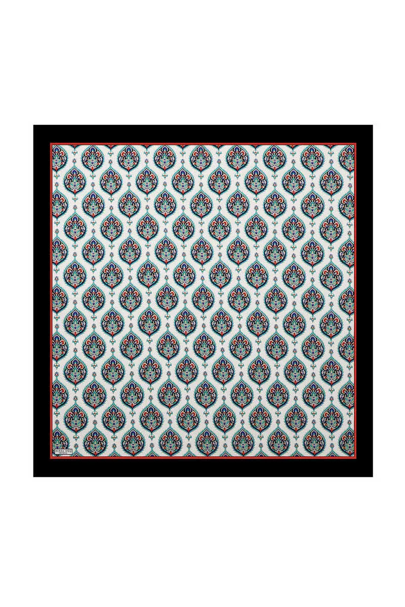 The Siyah Hatai Desen İpek Eşarp is a scarf made from 100% silk, measuring 90×90 cm. It originates from Bursa, Turkey.
