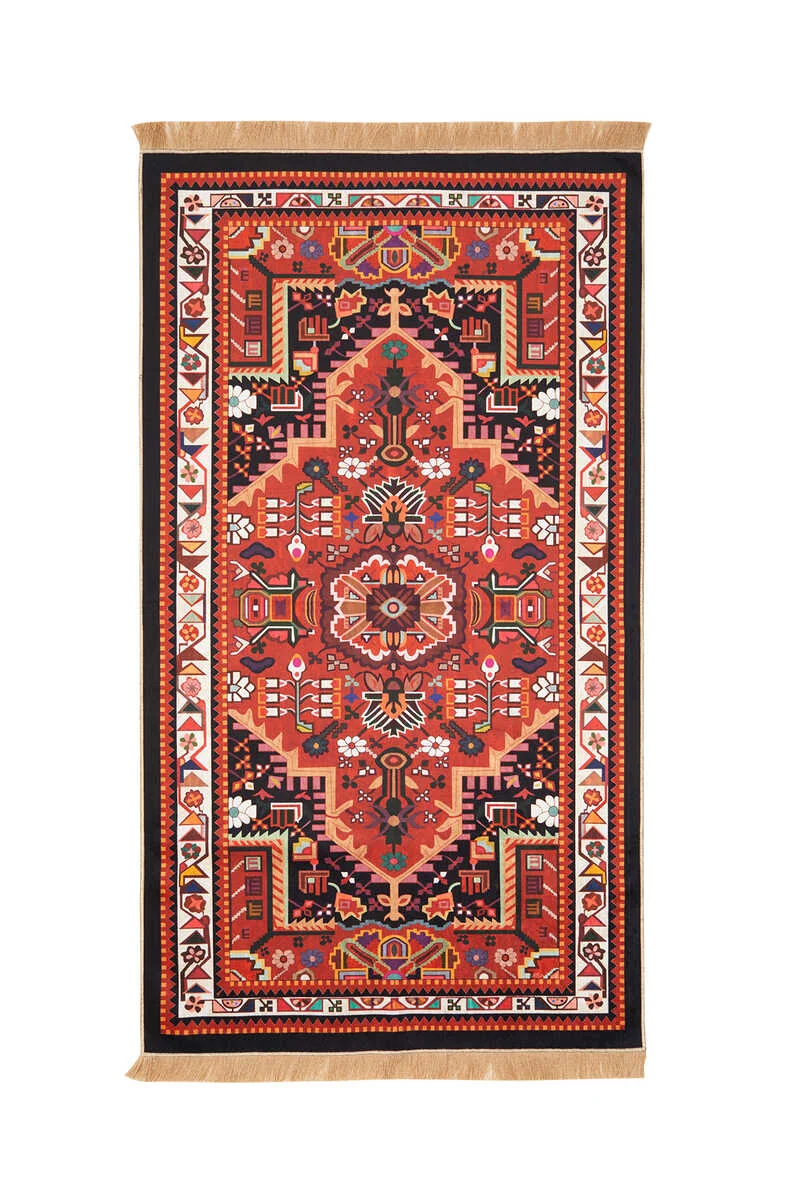The Siyah Kadife Halı Seccade is a Turkish motif and Çini patterned prayer rug with an eye-catching design. It measures 65×115 cm and features a velvet texture for comfortable use.