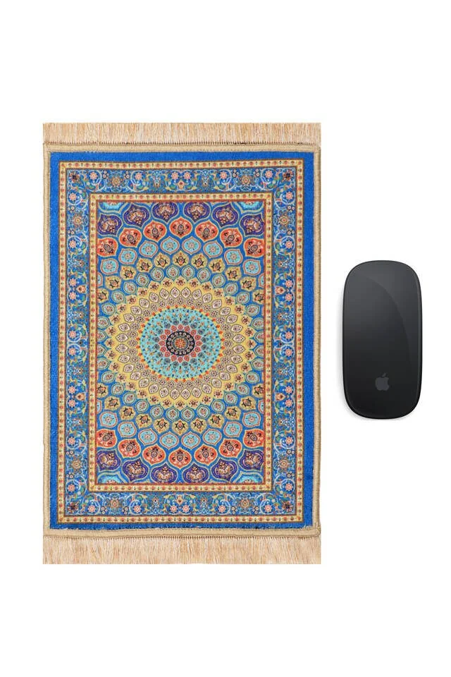 This Blue Decorative Small Rug Mousepad combines traditional Turkish motifs and ceramic patterns to enhance your workspace decor. Crafted in Bursa, Turkey, it offers a velvet-like texture that ensures smooth mouse movements. Measuring 25×30 cm, this mousepad is designed for both functionality and style.