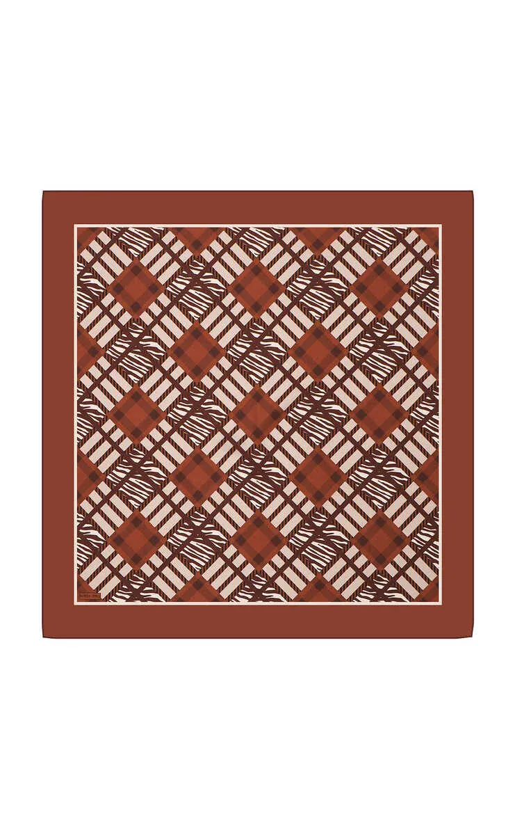 The Kiremit Karo Desen Twill İpek Eşarp is a 90 x 90 cm scarf made from 100% twill silk, offering ease of use. Its simple design with a brick color and tile pattern is suitable for any season.