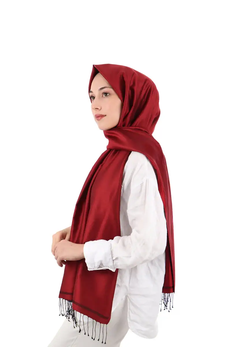 Enhance your wardrobe with the Burgundy Black Double-Sided Silk Shawl, crafted in Bursa, Turkey. This shawl offers versatility with its usable dual sides, providing a polished look for any occasion. Made from 100% silk, it features a sturdy structure and a glossy appearance. The dimensions of 70×200 cm ensure ease of use and comfort.