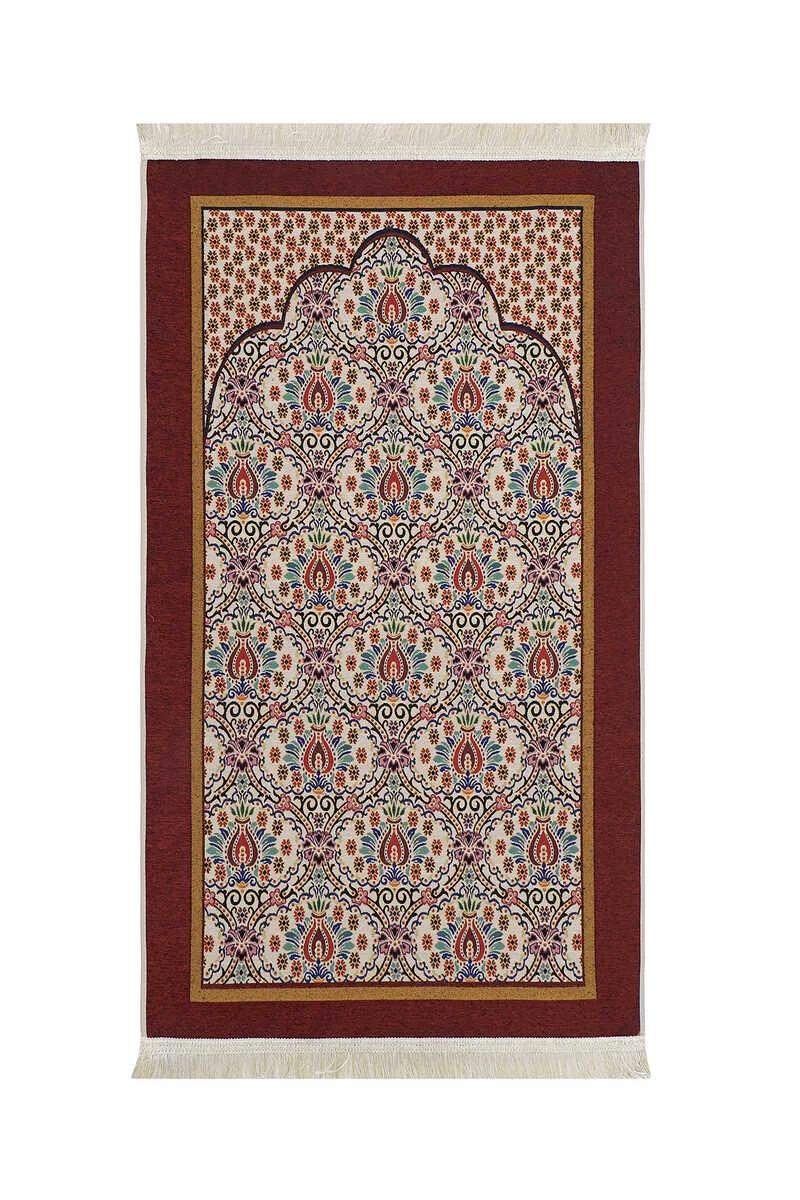The Bordo Gonca Desen Goblen Seccade is a Turkish prayer rug featuring eye-catching colors and motifs with a gobelin texture. It measures 70 x 110 cm and is designed for comfortable use, originating from Bursa, Turkey.