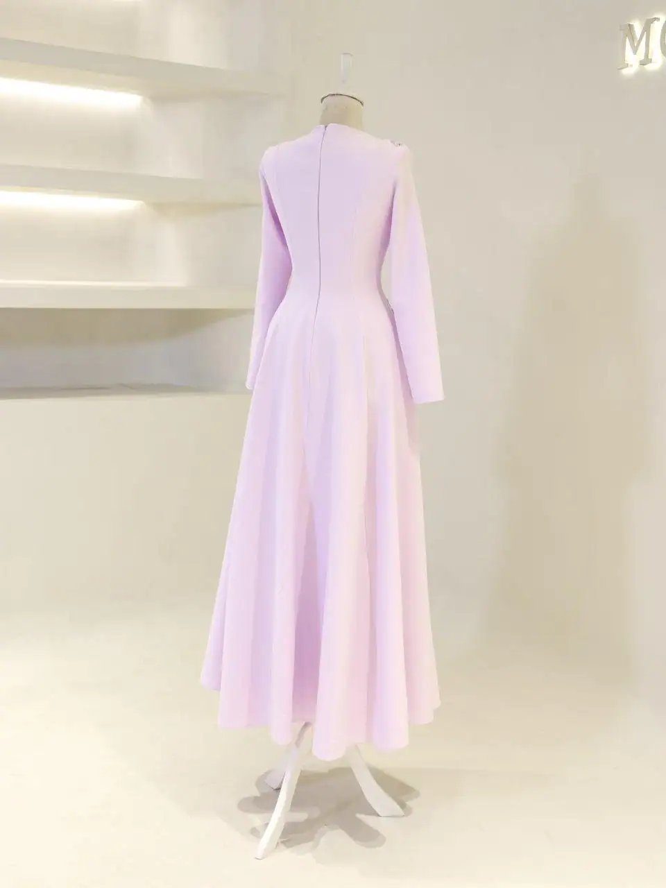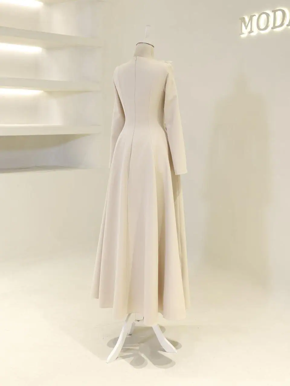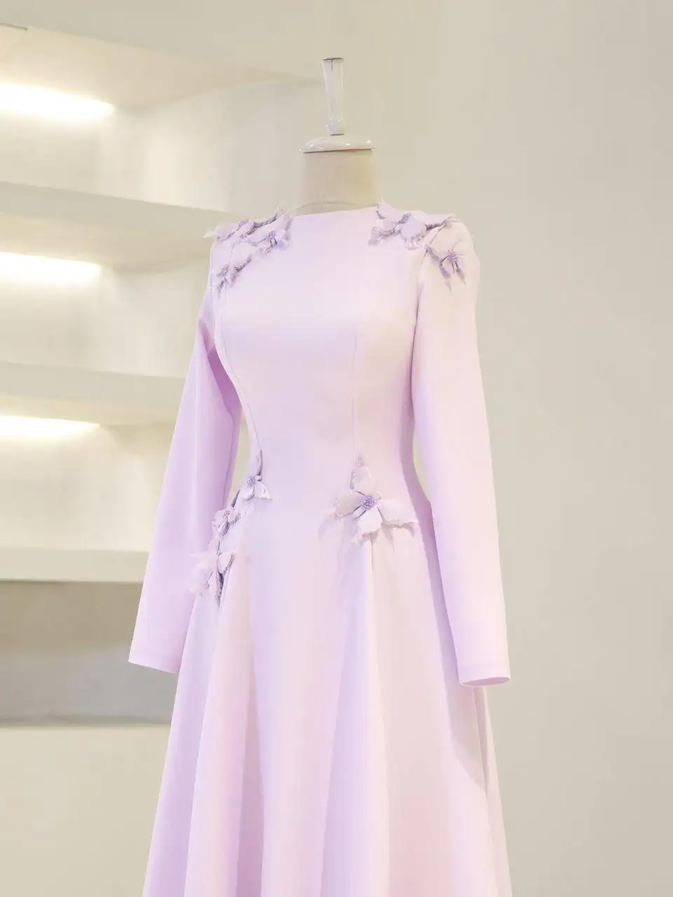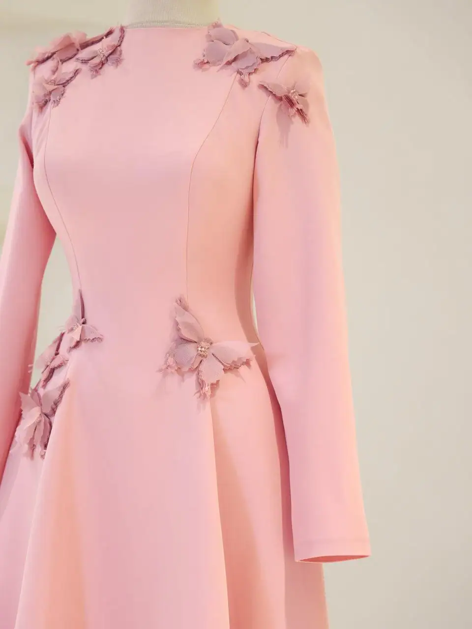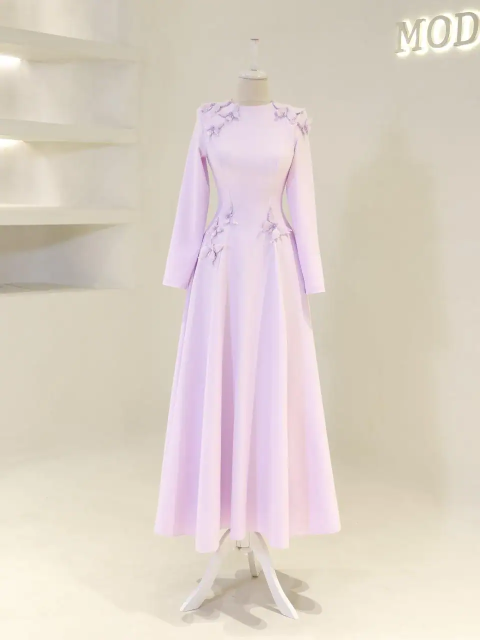 The Butterfly Modest Evening Dress is designed with precision to offer a perfect fit. Made from crepe fabric, this dress measures 145 cm in length and includes a lining for added comfort. It features a back zipper closure and built-in chest pads. The embellishments are three-dimensional and securely attached, ensuring durability. The dress is styled with an A-line skirt, providing a graceful silhouette.