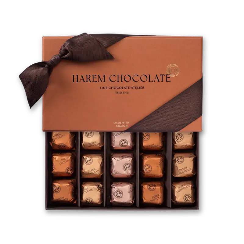 Cara Mix Chocolate offers a delightful blend of flavors with its handmade caramel paired perfectly with pistachio, cherry, and almond. Available in three different sizes: 260g (approximately 15 pieces), 520g (approximately 30 pieces), and 940g (approximately 54 pieces).