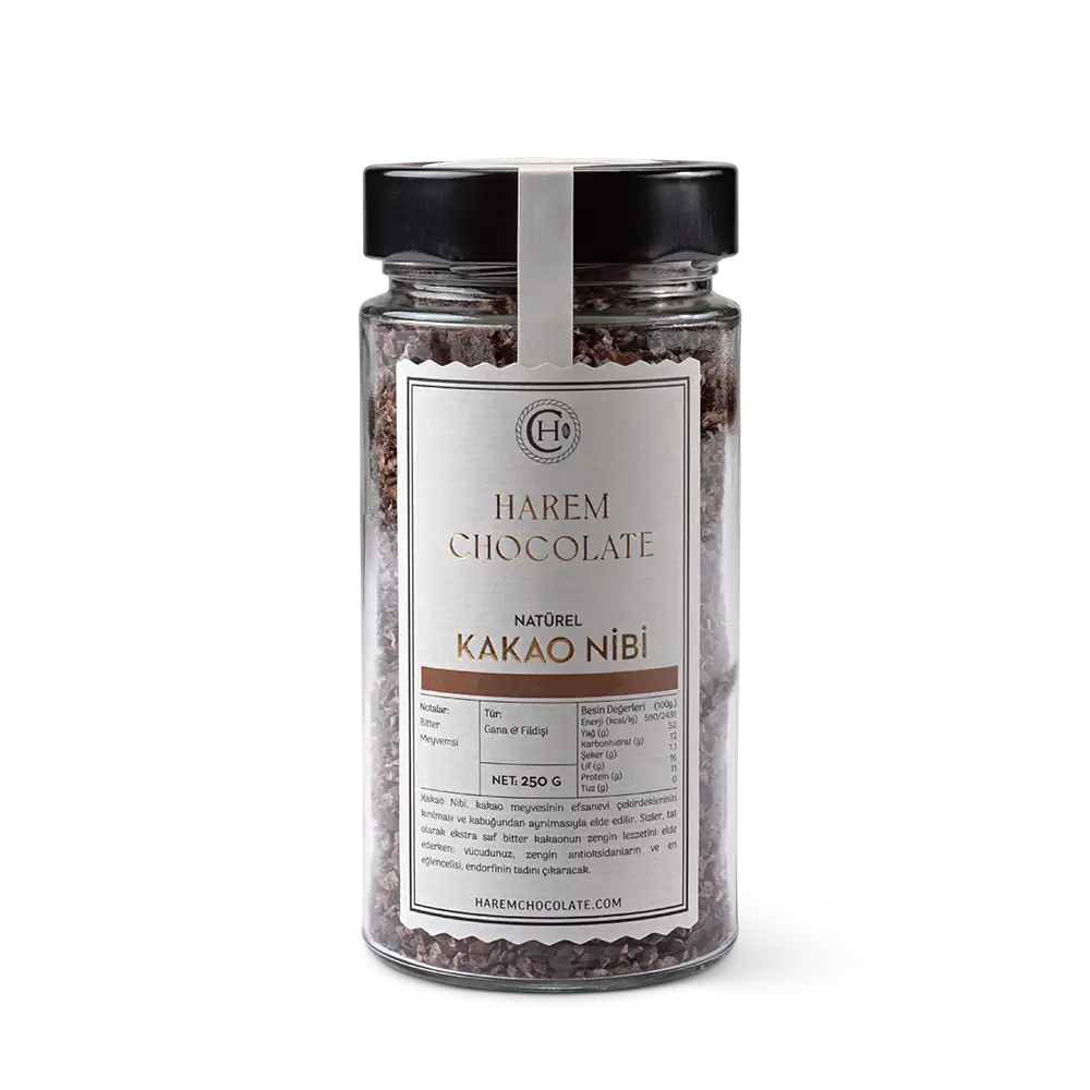 Cocoa Nibs in Jar offer the rich taste of extra pure dark cocoa. They provide your body with abundant antioxidants, magnesium, potassium, iron, and zinc, while also enhancing mental strength and offering the enjoyment of endorphins. This product is suitable for vegan diets and contains no allergens.