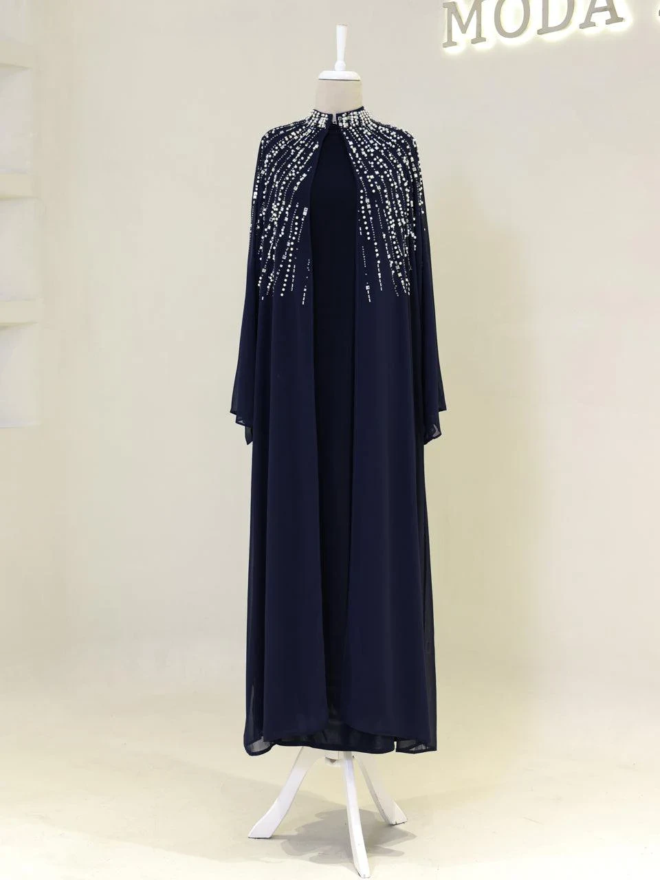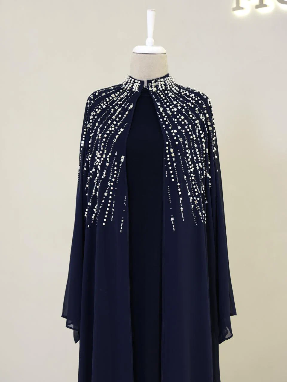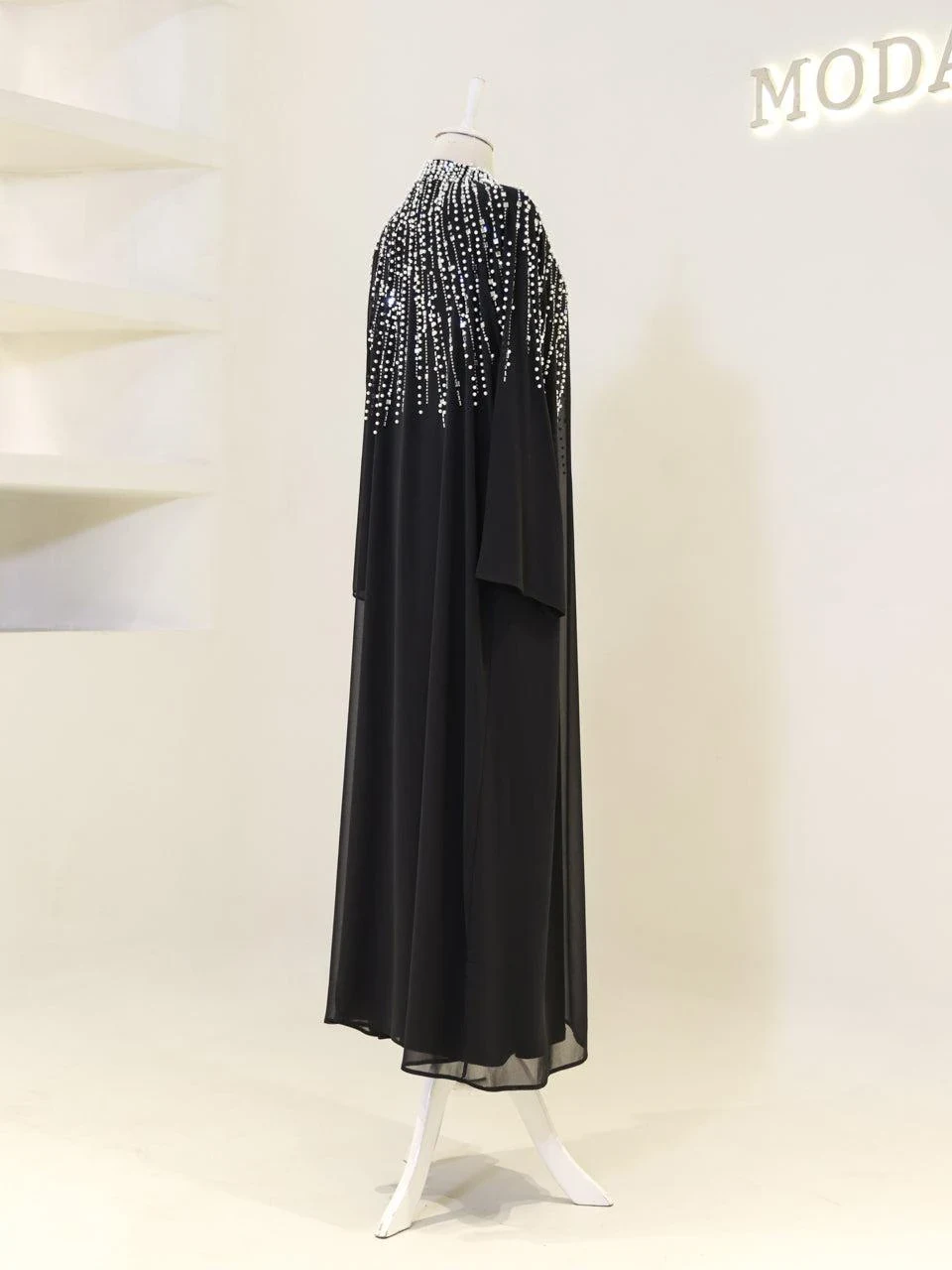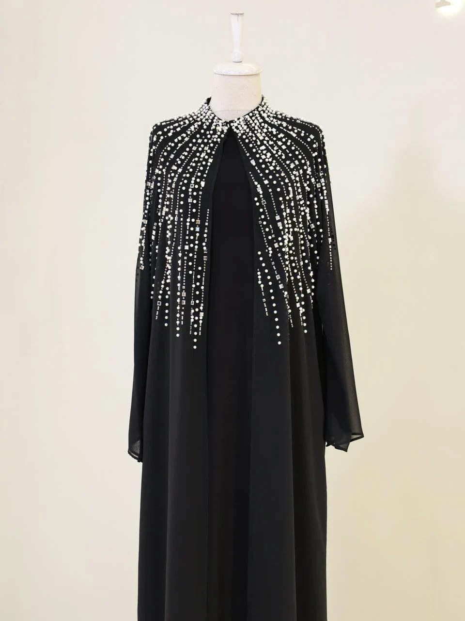 The Coral Abaya Modest Set is designed to provide a comfortable and stylish option for modest dressing. This set includes a full-length abaya measuring 145 cm, crafted from chiffon fabric, and an inner dress made from soft jersey material. The set has an oversize fit, ensuring ease of movement and comfort. Notably, the embellishments on the abaya are not glued, ensuring durability and a high-quality finish.