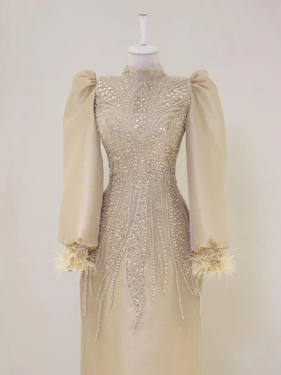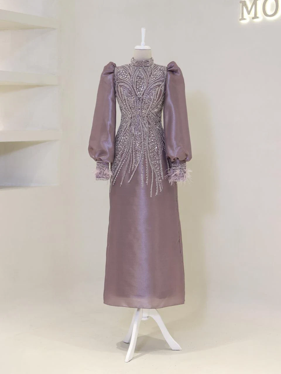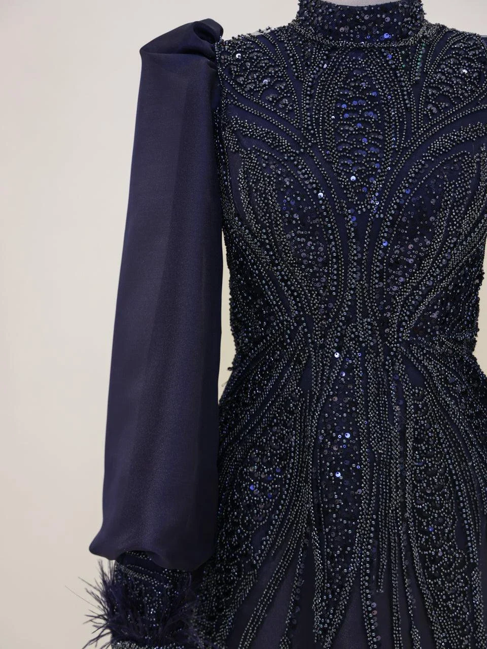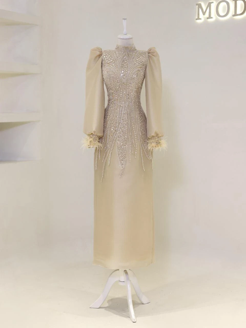 The Couture Dilay Modest Evening Dress is a custom-made garment designed to fit your measurements. The preparation period for this dress is approximately 7-10 days. This special design features hand-embroidered details. For more information or remote fitting, please contact our WhatsApp line at -. IMPORTANT: As the size increases, slight changes in the embroidery may occur. NOTE: The embellishments are glued, which might result in some shedding. This does not affect the overall appearance.