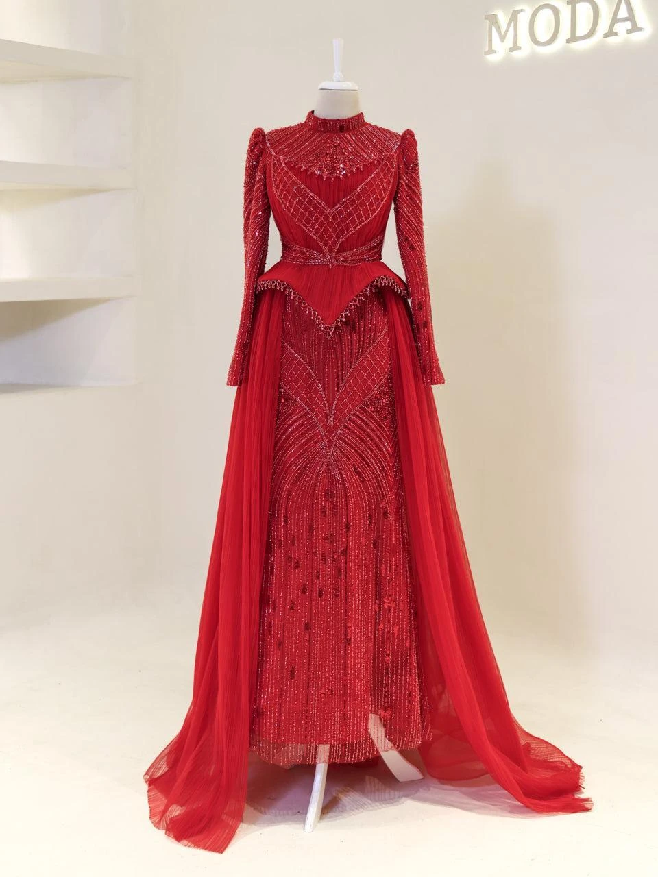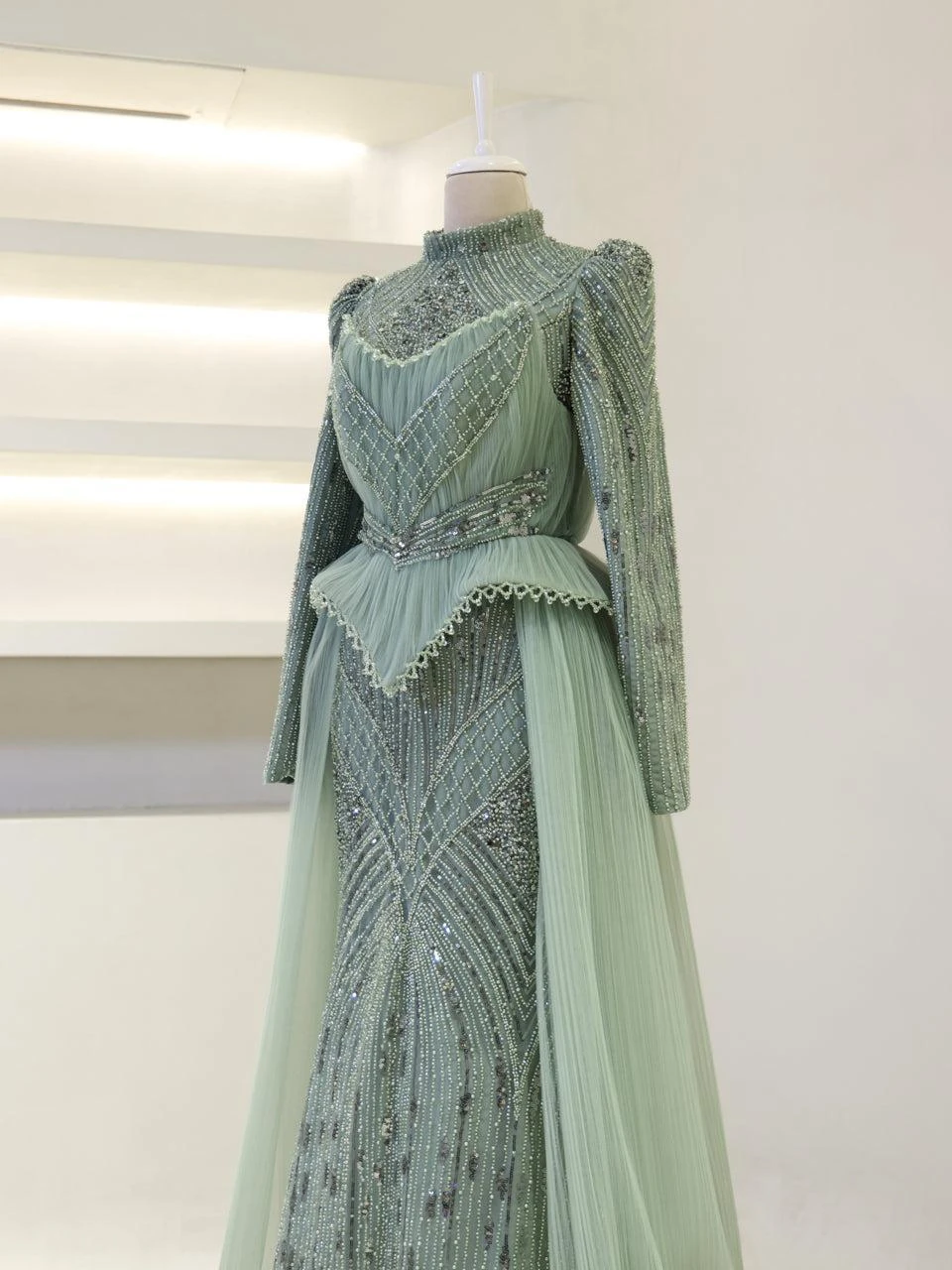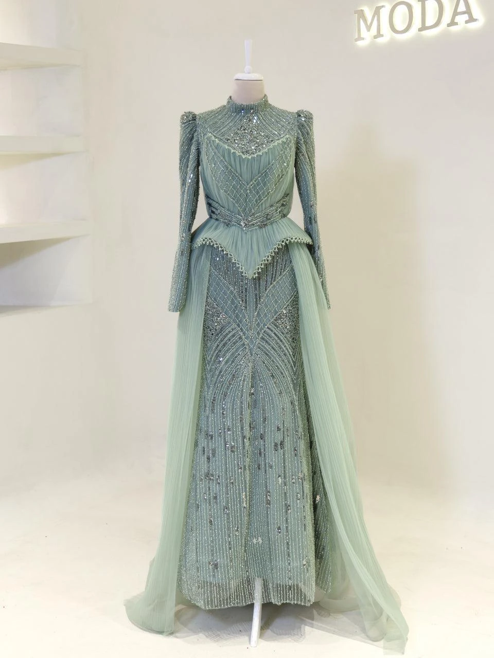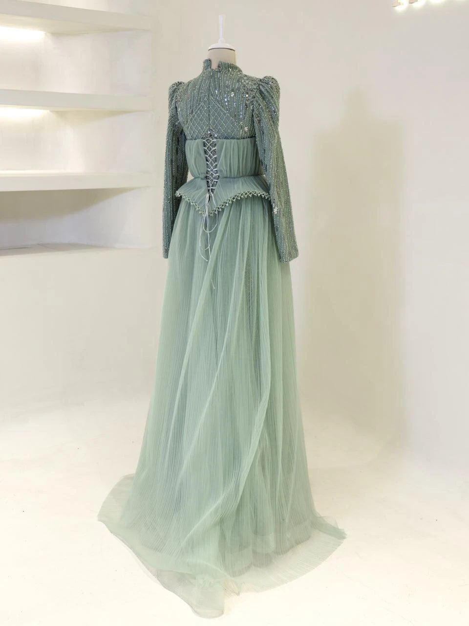 The Couture Elysia Modest Evening Dress is designed with precision to offer a perfect fit. Measuring 165 cm in length, this dress features a full lining for comfort and ease of wear. It is equipped with a back zipper for convenience. The detachable corset detail adds versatility to the design. The embellishments on the dress are not glued, ensuring durability and quality. The dress is styled in an A-line skirt form, providing a graceful silhouette.