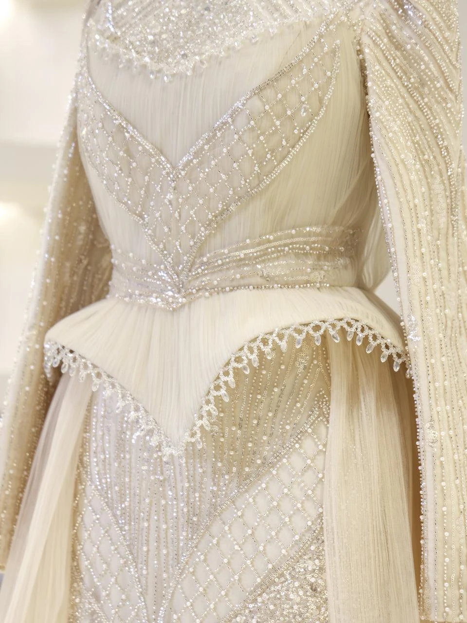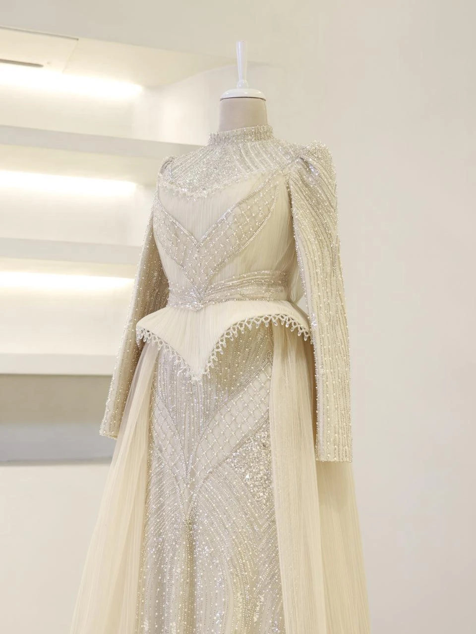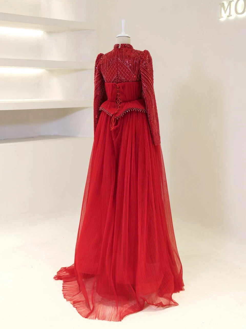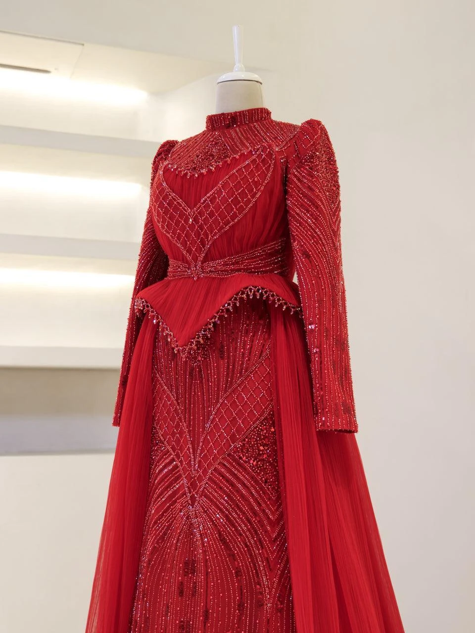 The Couture Elysia Modest Evening Dress is designed with precision to offer a perfect fit. Measuring 165 cm in length, this dress features a full lining for comfort and ease of wear. It is equipped with a back zipper for convenience. The detachable corset detail adds versatility to the design. The embellishments on the dress are not glued, ensuring durability and quality. The dress is styled in an A-line skirt form, providing a graceful silhouette.