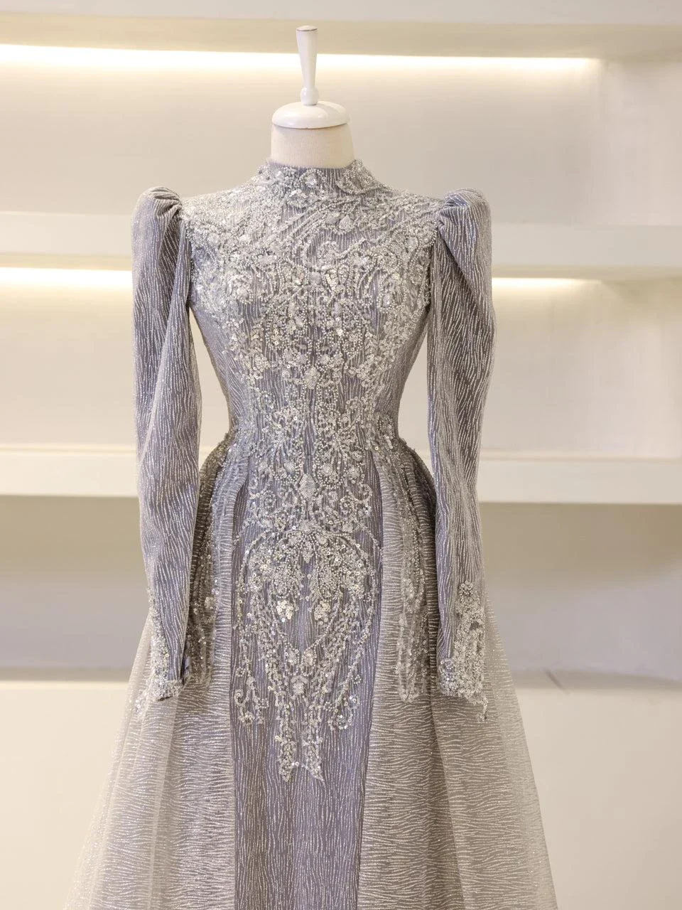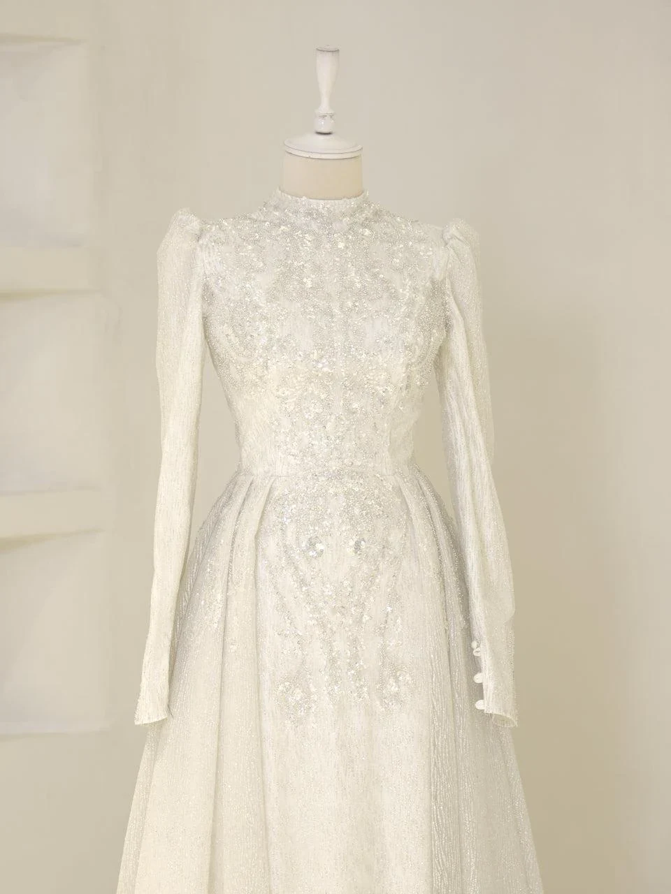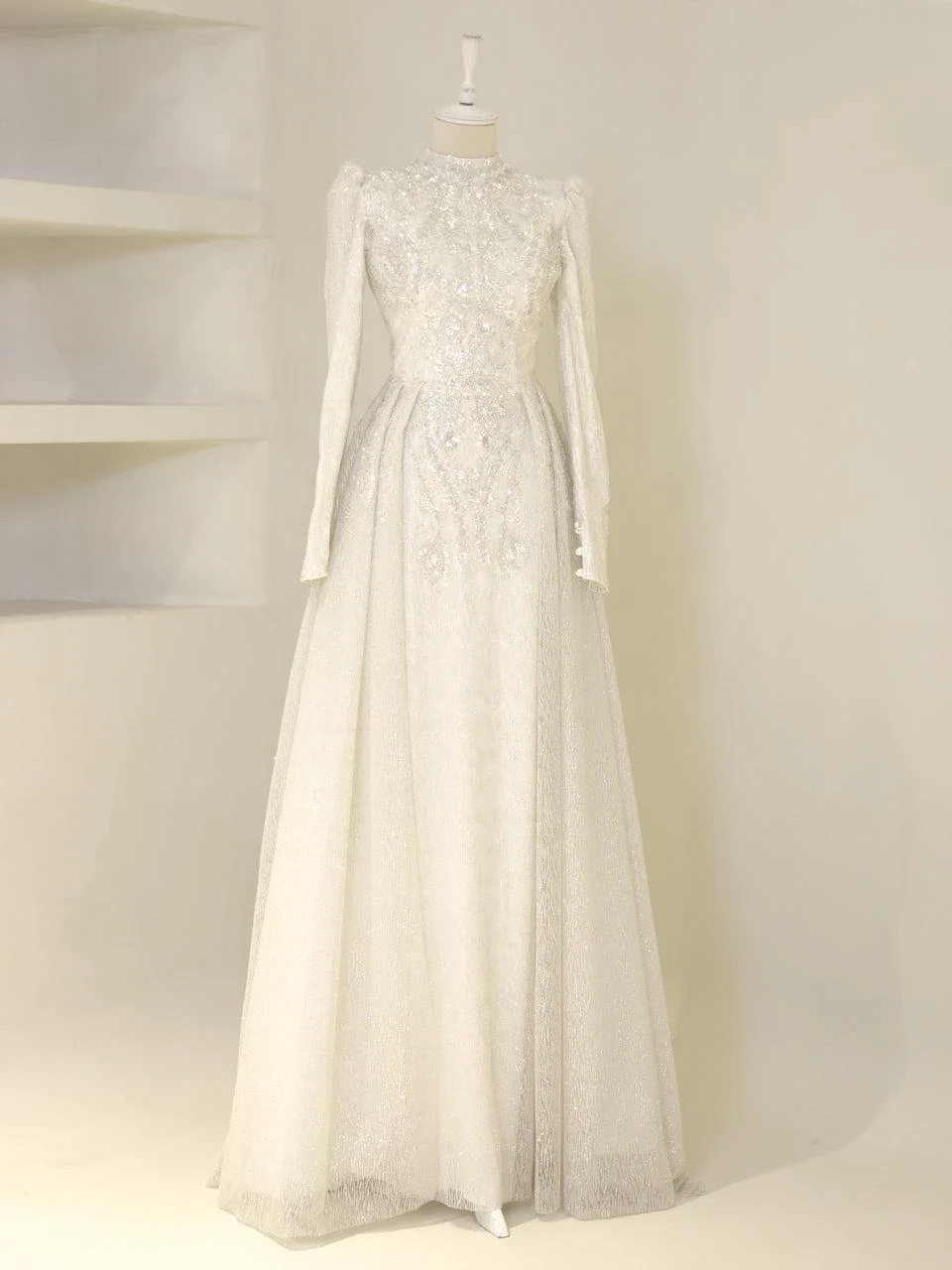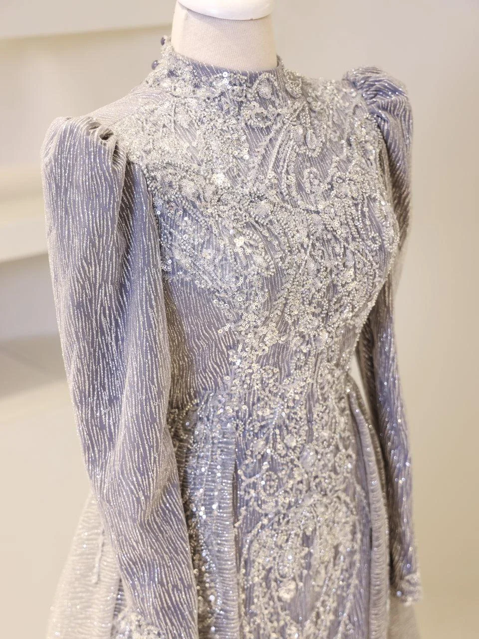 The Couture Fabya Evening Gown is tailored to your measurements upon order, with an average preparation time of 7-10 days. This special design features hand-crafted embellishments. For detailed information and remote fitting, please contact our WhatsApp line at -. IMPORTANT: In our custom-made models, there may be slight changes in embellishments as the size increases. NOTE: As the embellishments are glued, some shedding may occur, which does not affect the overall appearance.
