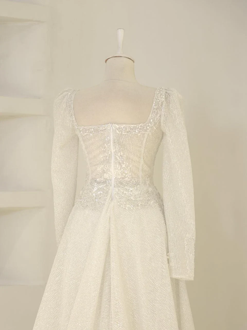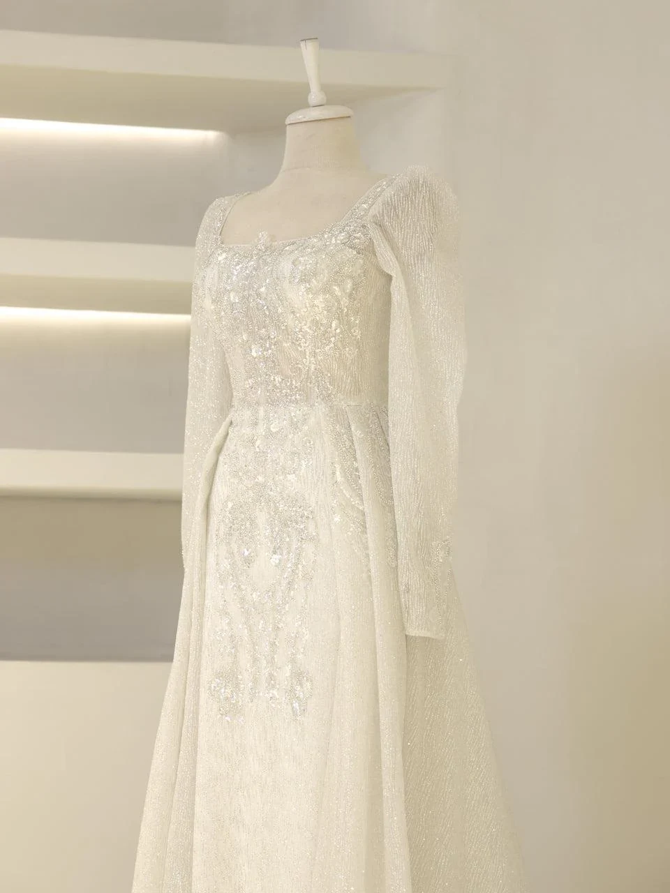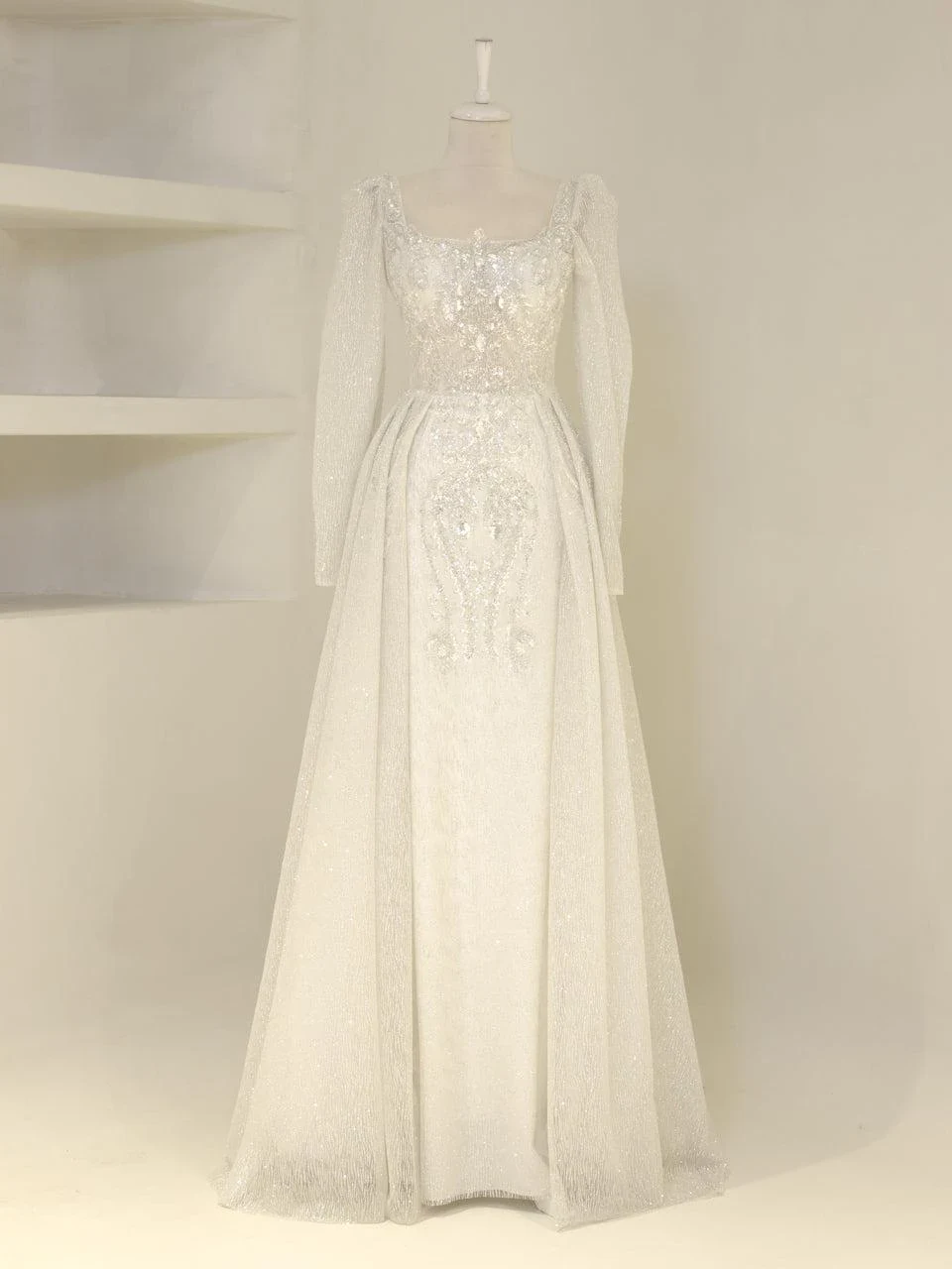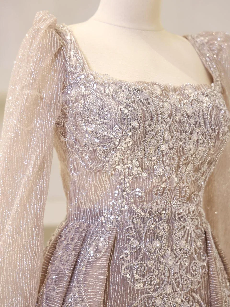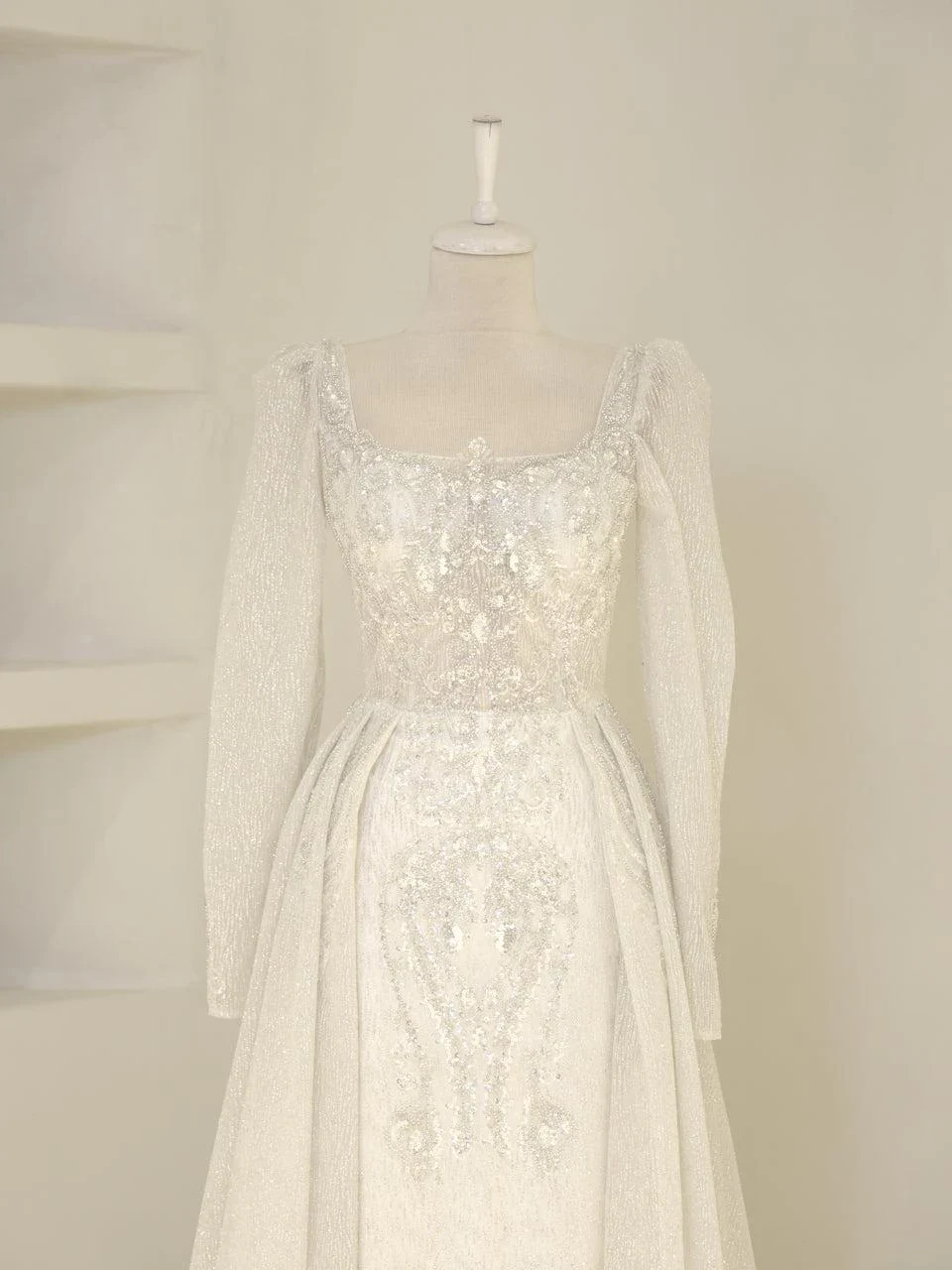 The Couture Fabya Evening Gown is tailored to your measurements upon order, with an average preparation time of 7-10 days. This special design features hand-crafted embellishments. For detailed information and remote fitting, please contact our WhatsApp line at -. IMPORTANT: In our custom-made models, there may be slight changes in embellishments as the size increases. NOTE: As the embellishments are glued, some shedding may occur, which does not affect the overall appearance.