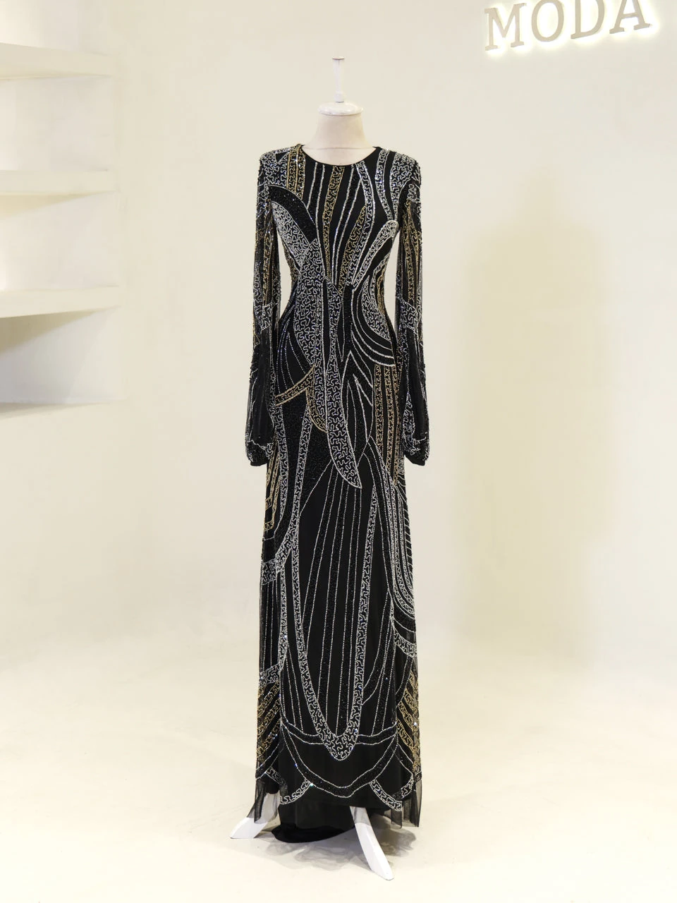 The Couture Marvelle Evening Dress offers a full-length fit with a standard length of 160 cm. It includes a train and is designed with non-adhesive embellishments. The dress is lined and features a back zipper closure. The sleeves are transparent, and the dress has a straight skirt form. Note: Upon request, the transparent sleeve details can be covered. For more information, please contact us via WhatsApp at +90 553 978 48 86.