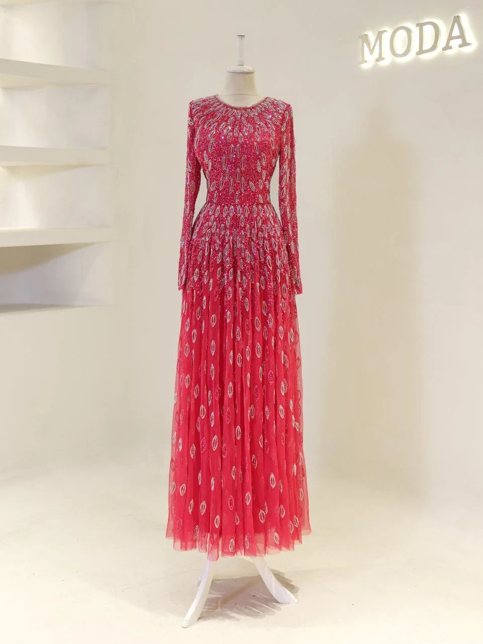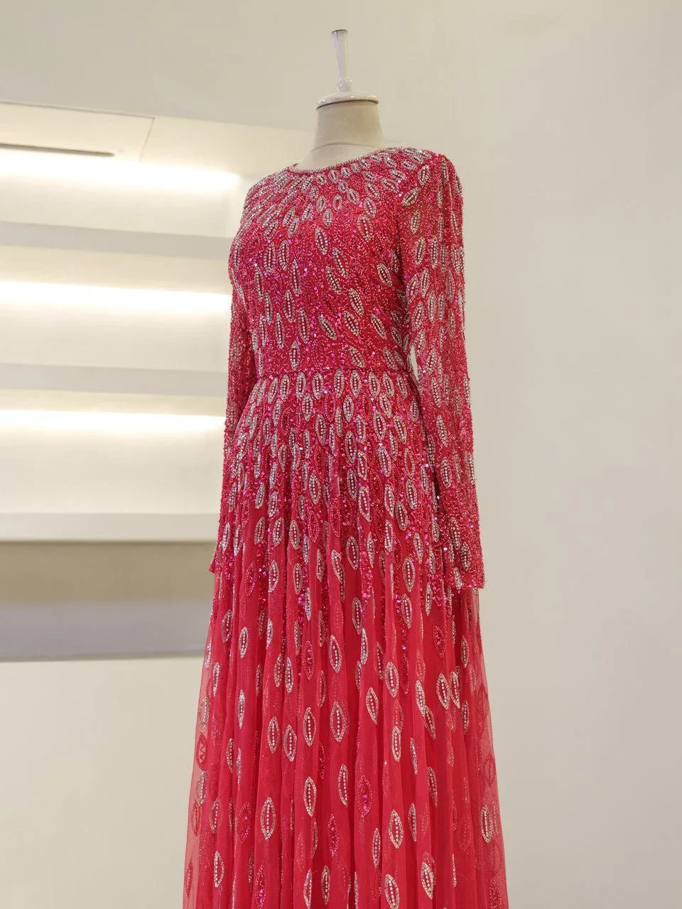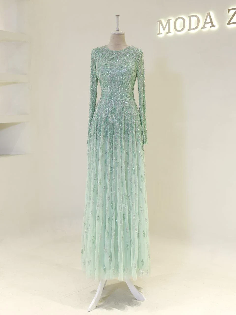 The Couture Morenna Modest Evening Dress is designed with precision, offering a true-to-size fit. The dress measures approximately 170 cm in length and is crafted from tulle fabric with full lining for added comfort. It features a back zipper closure and non-adhesive embellishments. The sleeves are transparent, adding a touch of sophistication, while the skirt has a voluminous form. Please note, upon request, the transparent sleeve details can be covered for an additional fee. For more information, please contact our WhatsApp support line at +90 553 978 48 86.