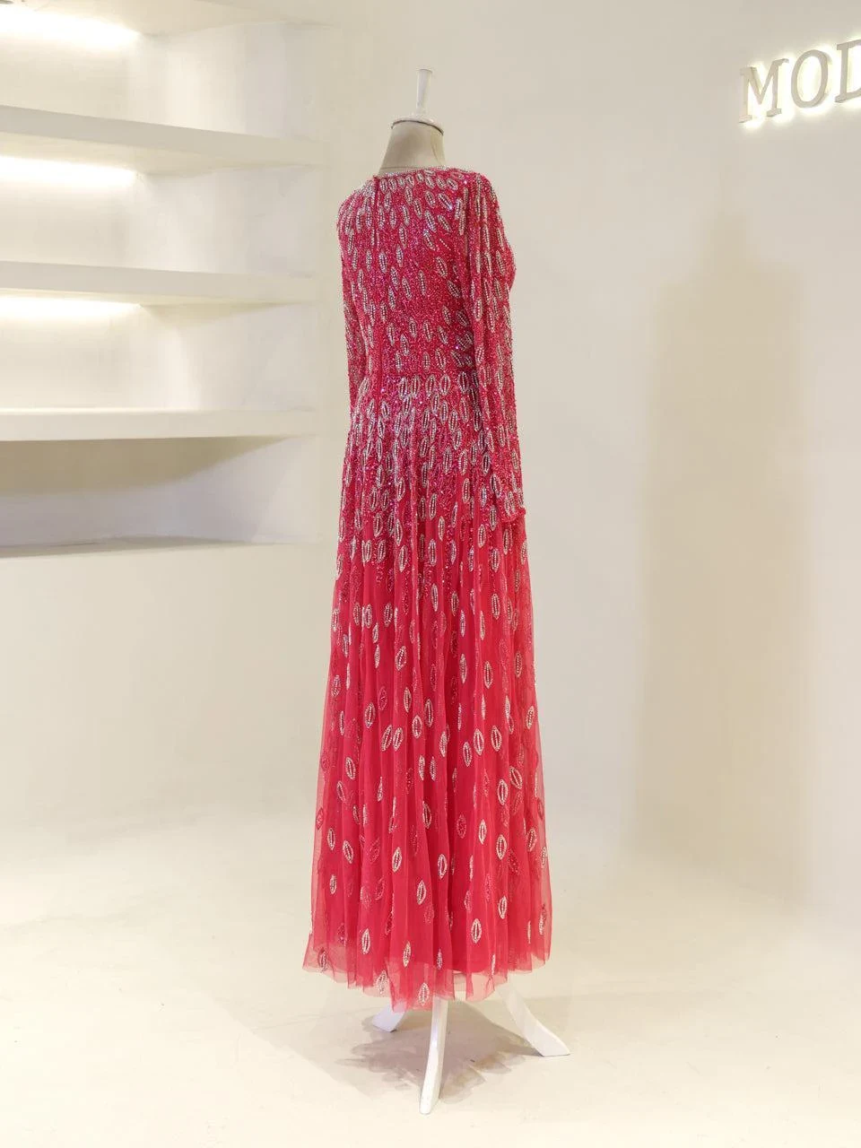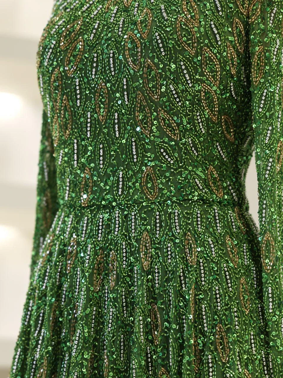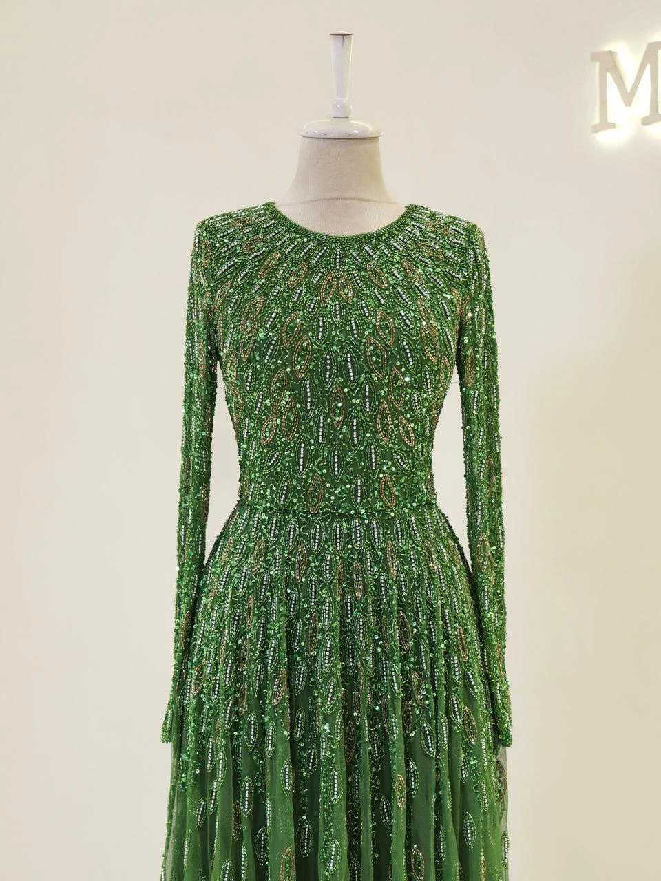 The Couture Morenna Modest Evening Dress is designed with precision, offering a true-to-size fit. The dress measures approximately 170 cm in length and is crafted from tulle fabric with full lining for added comfort. It features a back zipper closure and non-adhesive embellishments. The sleeves are transparent, adding a touch of sophistication, while the skirt has a voluminous form. Please note, upon request, the transparent sleeve details can be covered for an additional fee. For more information, please contact our WhatsApp support line at +90 553 978 48 86.