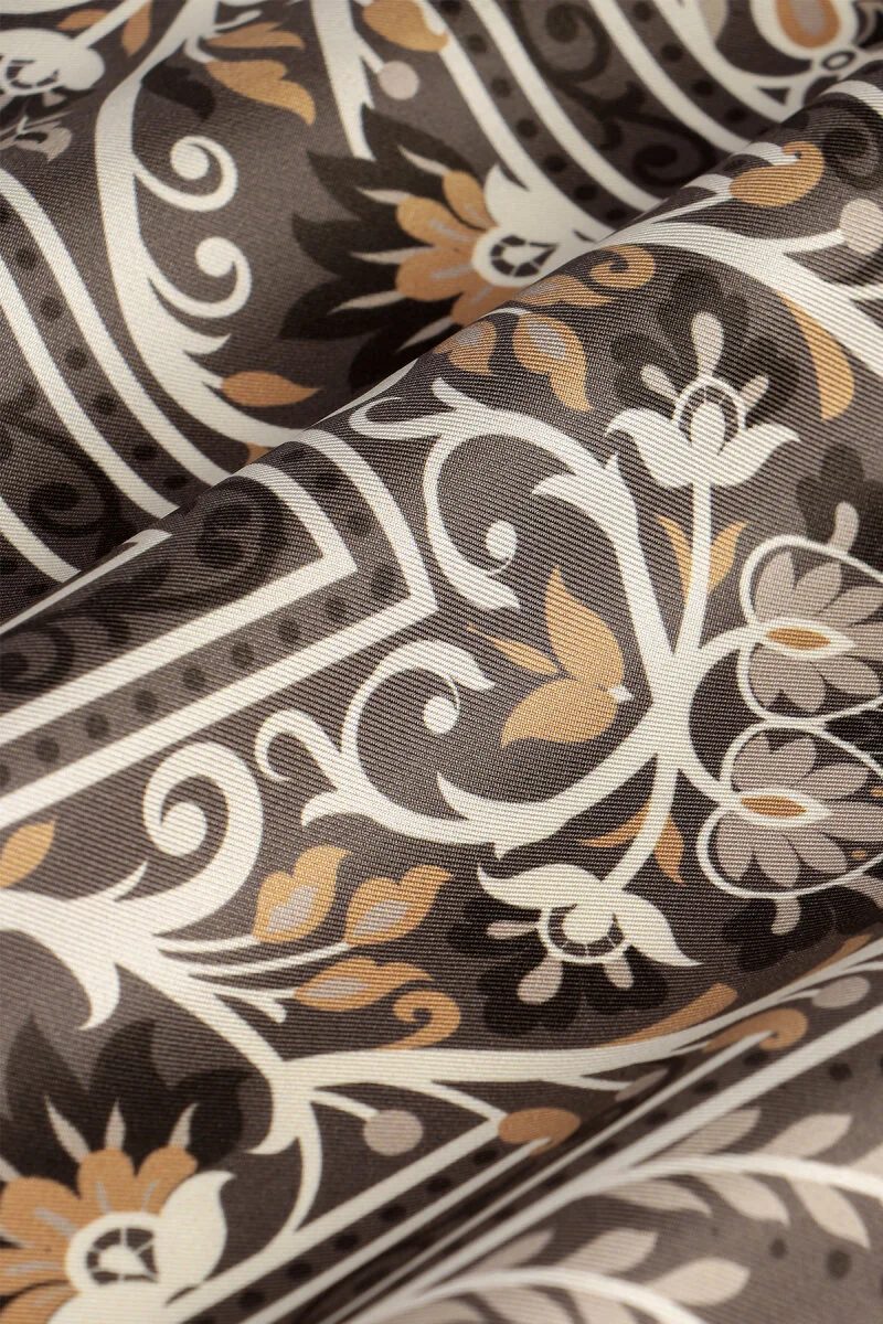 The Dark Stone Crown Pattern Twill Silk Scarf combines elegance with versatility. Crafted from 100% twill silk, it offers both classic and modern appeal. The intricate details and aesthetic lines make it a strong addition to any style. Made in Bursa, Turkey, this scarf is designed for ease of use with its 90×90 cm dimensions.