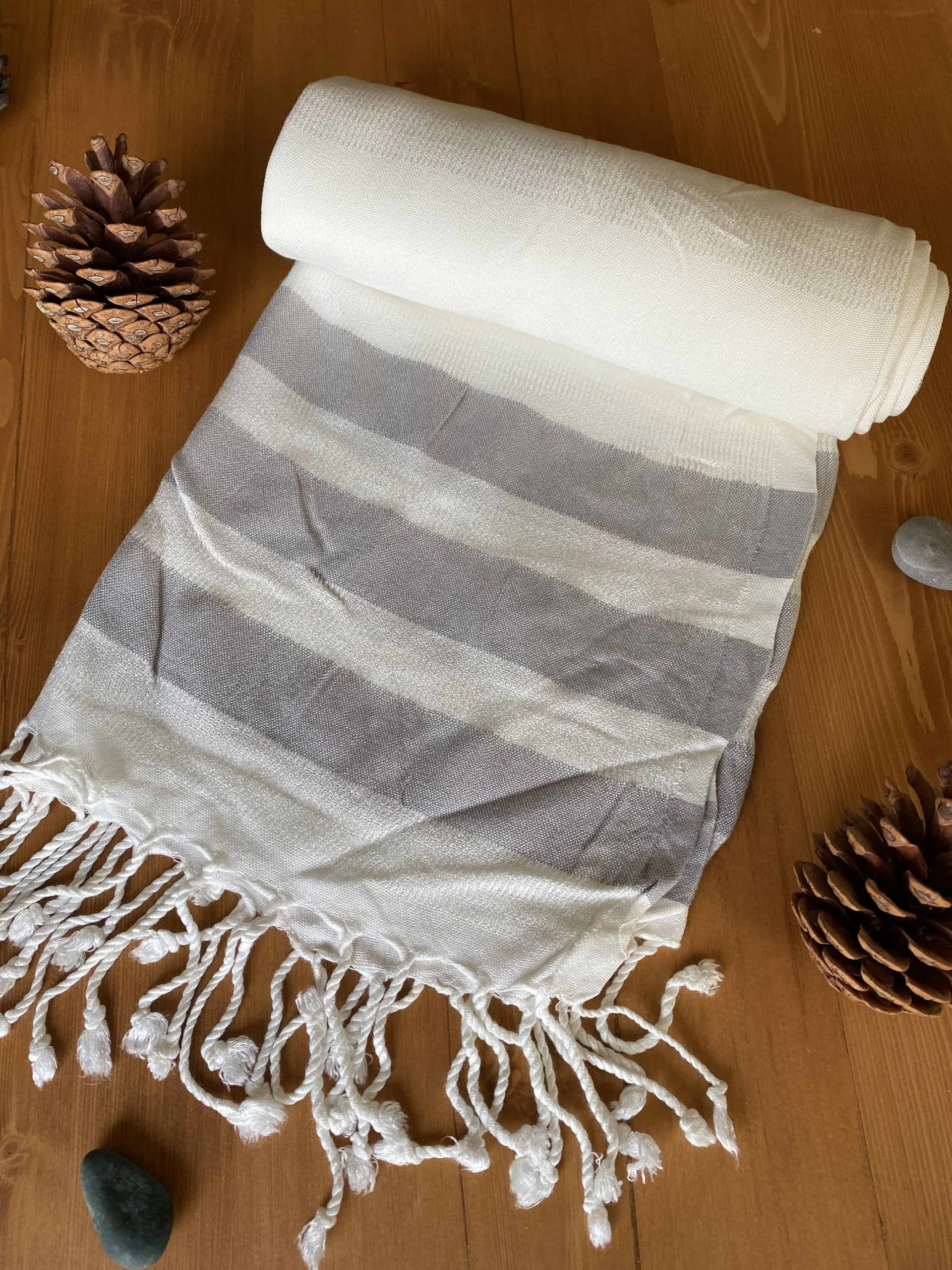 The fringes are all hand tied with exposed threads adding to the heirloom appeal of this towel. Our peshtemals are super absorbent and so soft to be used as a bath towel. Its natural texture and elegant look would also make it your favorite throw on your couch. This truly is one of the most versatile pieces you could own