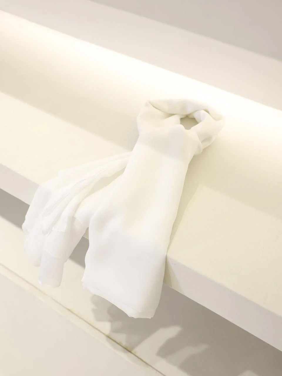 This ecru evening shawl fabric is crafted from high-quality janjan chiffon. The fabric is 1.50 meters wide and is sold by the meter. A standard shawl length is 2 meters. Please select your desired length for other options. Note: Returns and exchanges are not available.