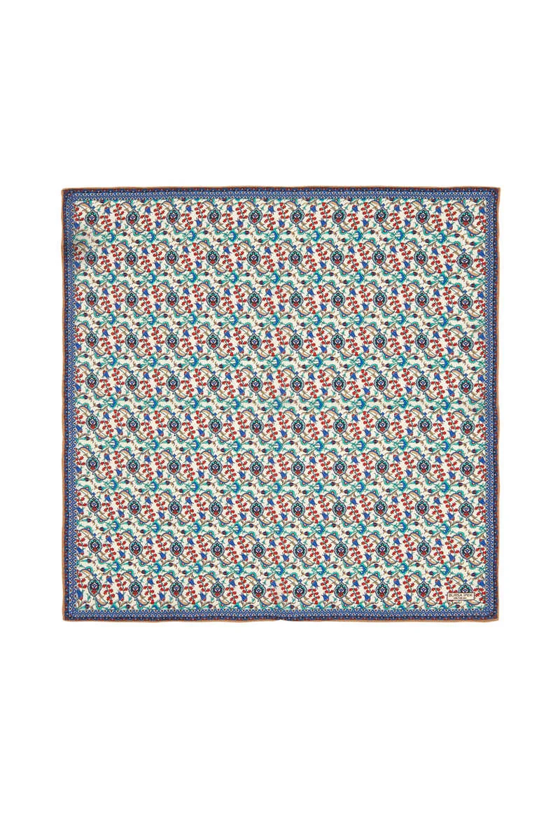 Discover the blend of tradition and modernity with the Ekru Gold Ivy Tulip Pattern Silk Handkerchief. This unique piece features traditional Turkish motifs with a contemporary twist. Crafted from 100% silk, it offers a luxurious feel with its thick, soft texture. Measuring 55x55cm, it provides ease of use while adding a touch of elegance to any outfit. Originating from Bursa, Turkey, this handkerchief embodies both comfort and style.