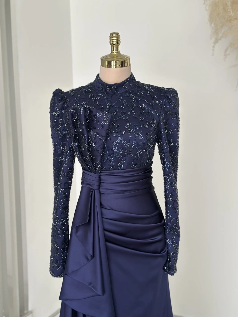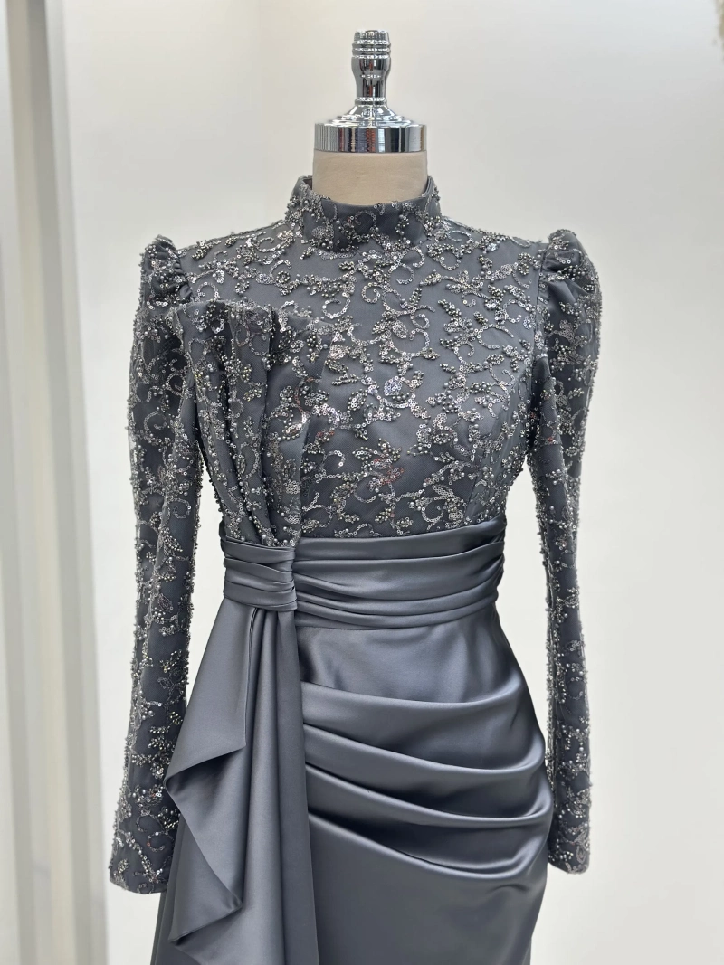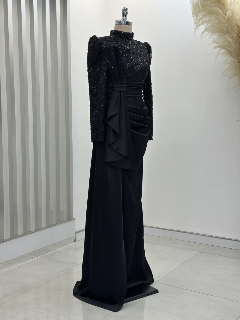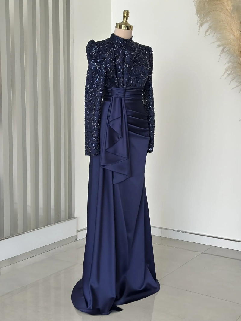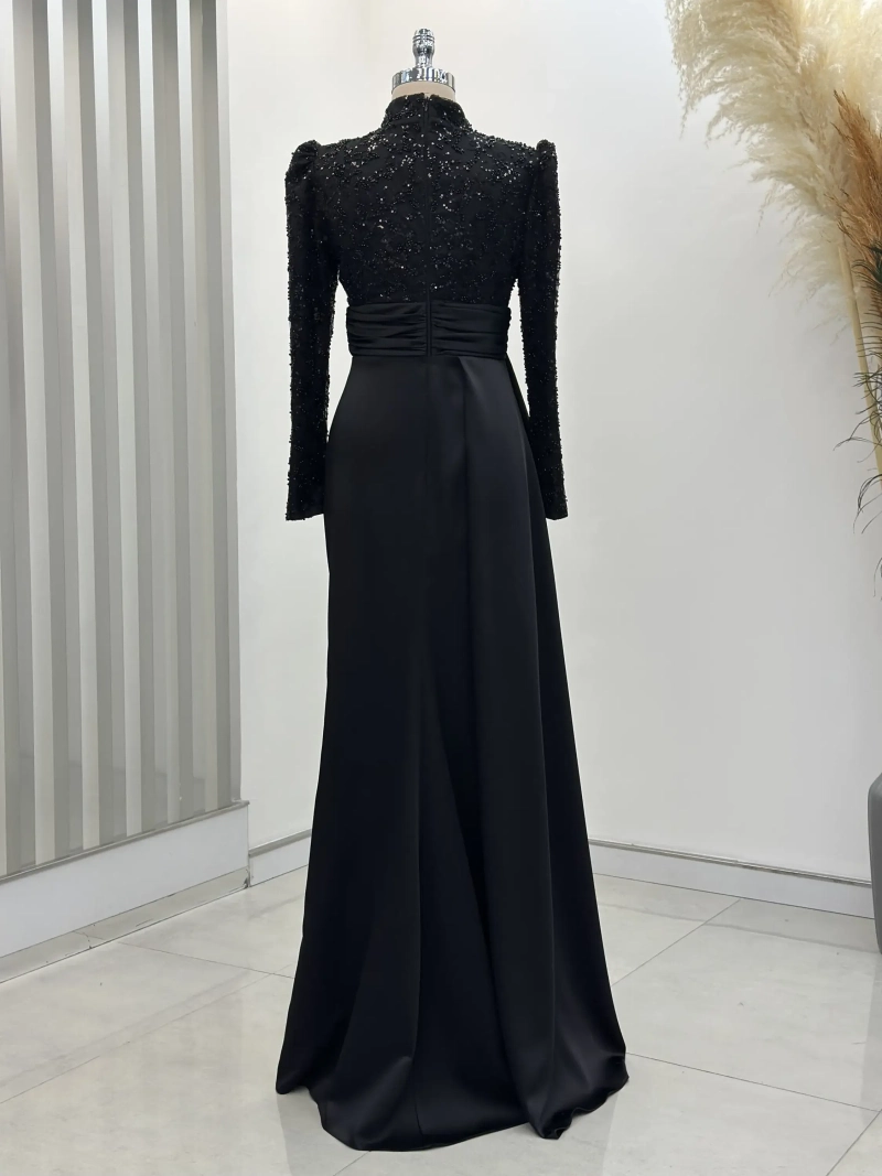 This stunning gown blends timeless modesty with luxurious detailing, making it an ideal choice for weddings, receptions, and formal events. Featuring a high neckline, long sleeves, and a flattering silhouette, it offers full coverage with a graceful, tailored fit.