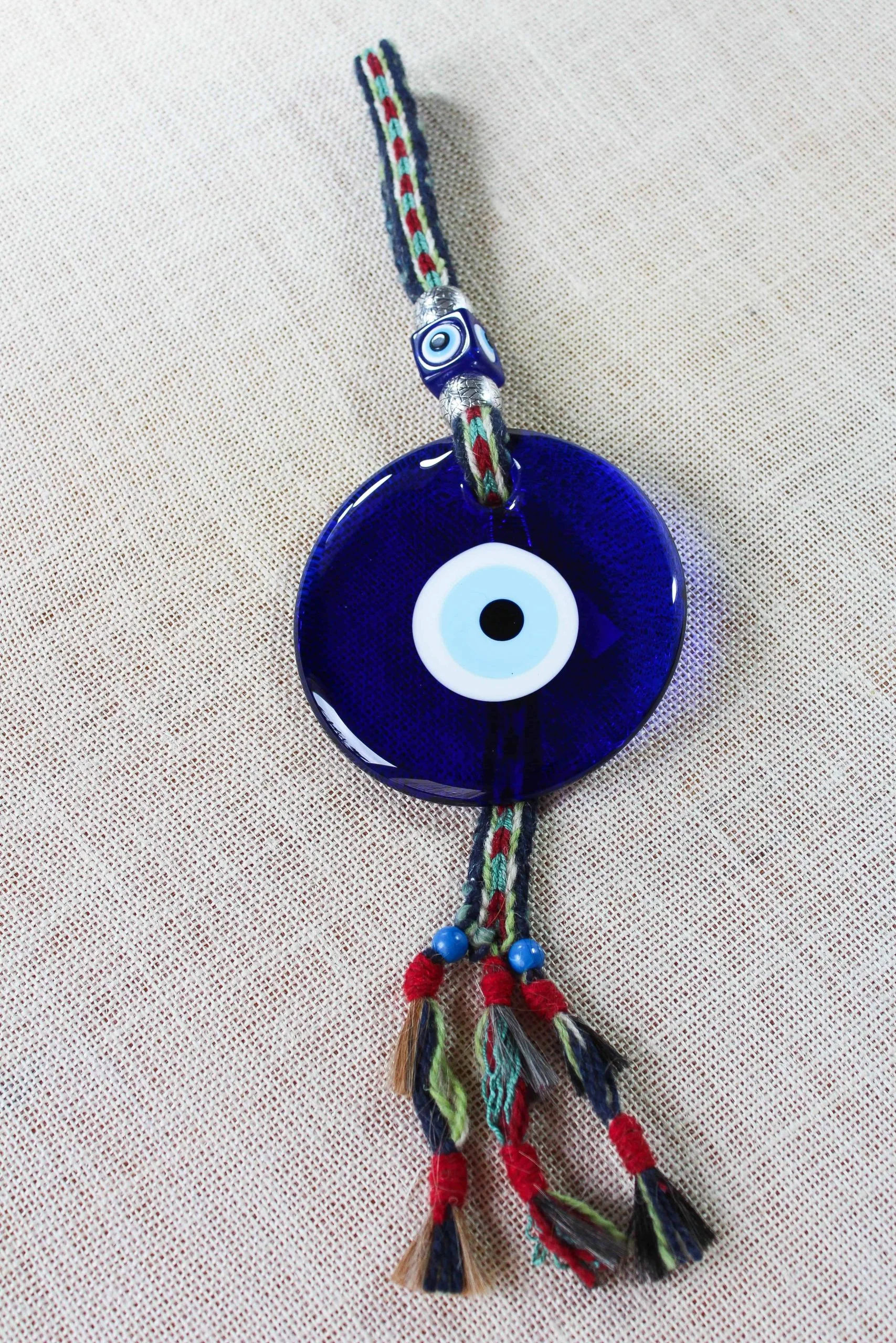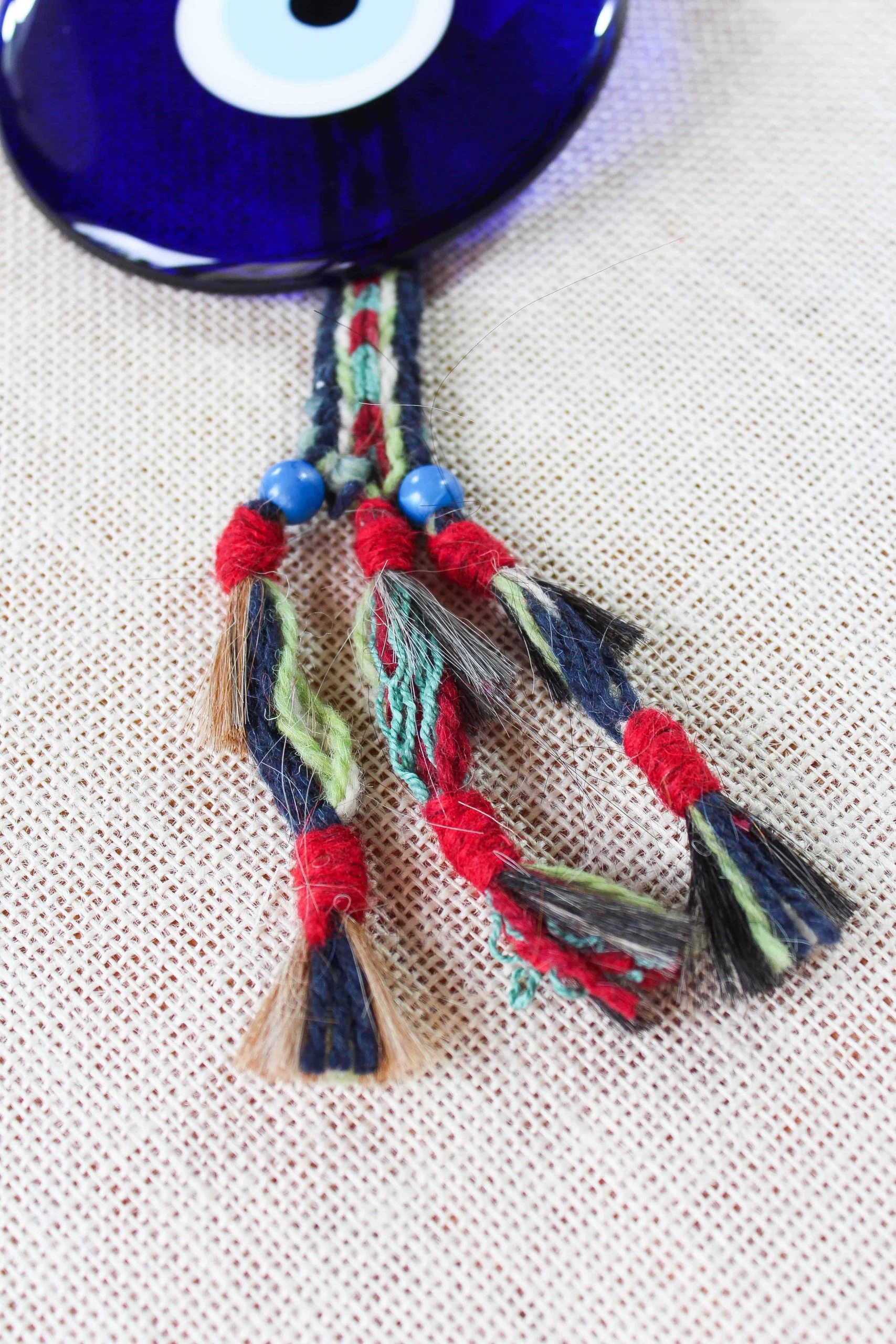 Evil eye macrame decor. This macrame wall hanging evil eye made of handmade blue evil eye beads and colorful rope