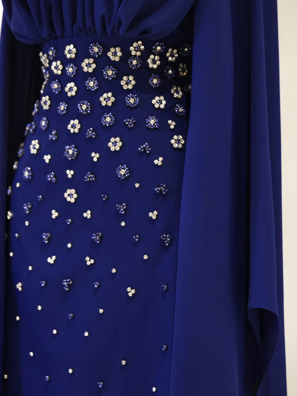 The Floria Modest Evening Dress is designed with precision and elegance. Made from quality crepe fabric, this dress features a full-length design measuring 150 cm. It is equipped with a back zipper closure and includes a lining for added comfort. The Spanish sleeves and built-in chest pads enhance its sophisticated look. The dress is adorned with adhesive embellishments and maintains a straight skirt form.