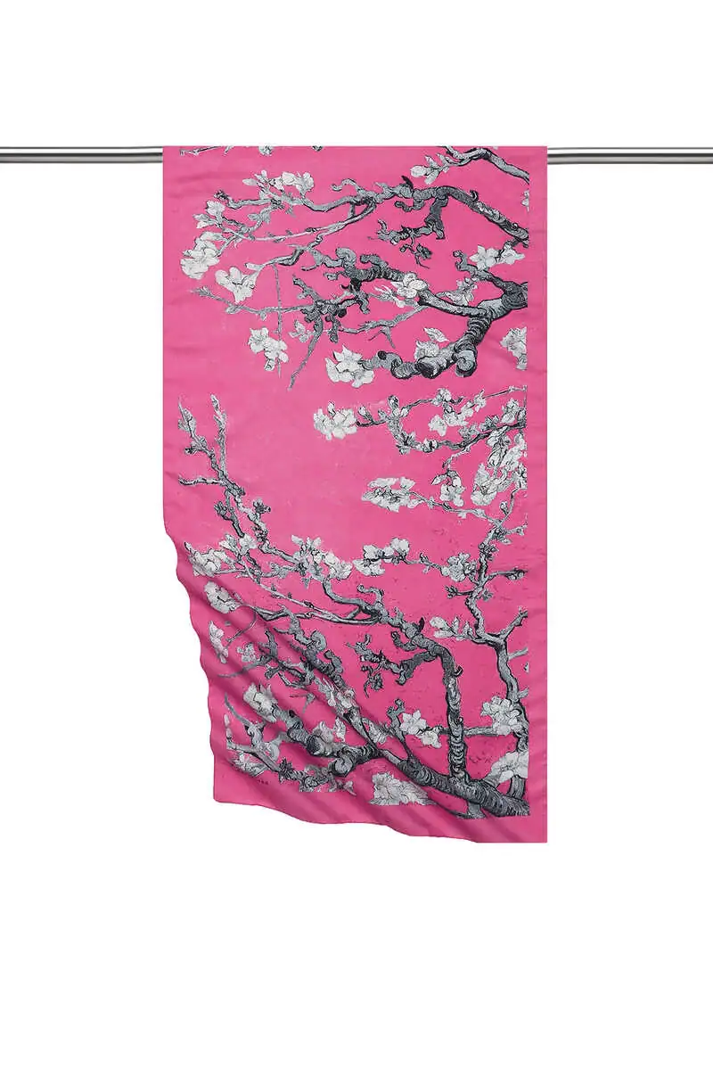 The Fuchsia Almond Blossom Silky Scarf combines vibrant fuchsia colors with classic almond blossom patterns on a silky rayon fabric. Measuring 45 x 160 cm, this scarf offers both style and practicality. It is crafted in Bursa, Turkey, known for its quality textile production.