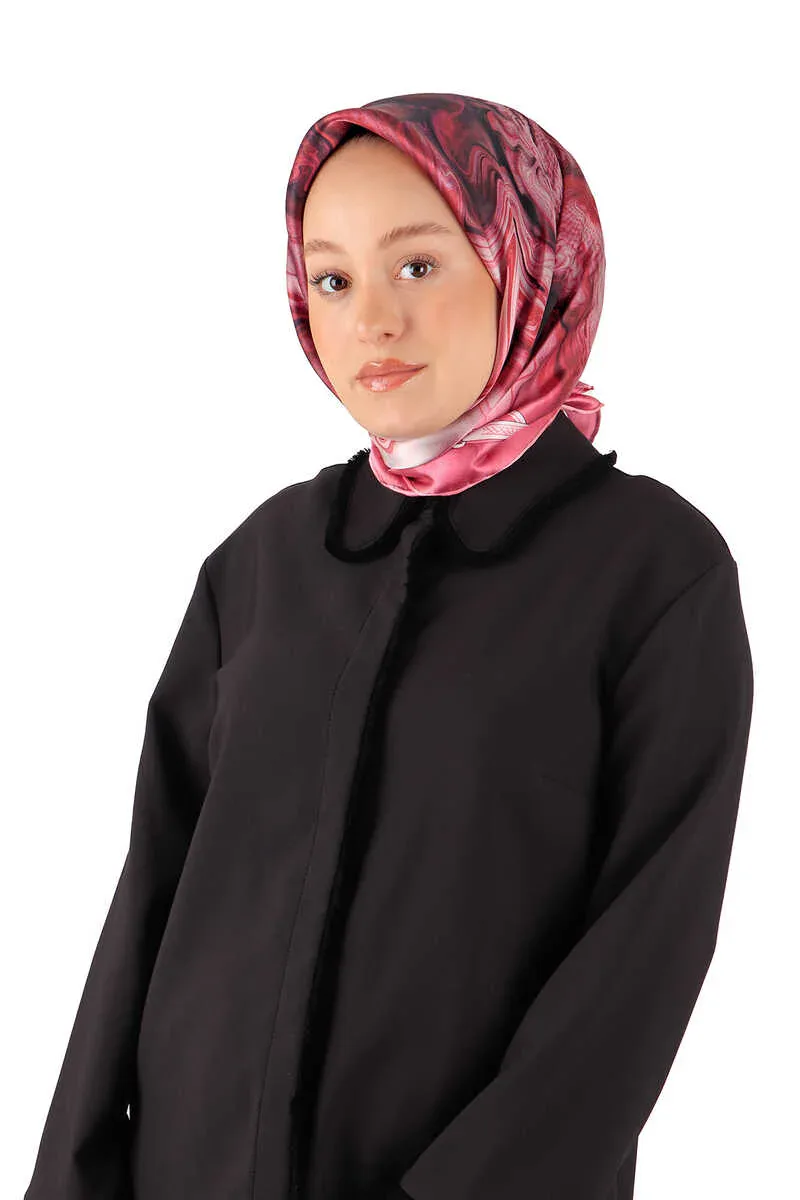 The Fuşya Kemer Desen Sura İpek Eşarp is a silk scarf with dimensions of 90×90 cm, offering ease of use. It is made from 100% silk and originates from Bursa, Turkey.