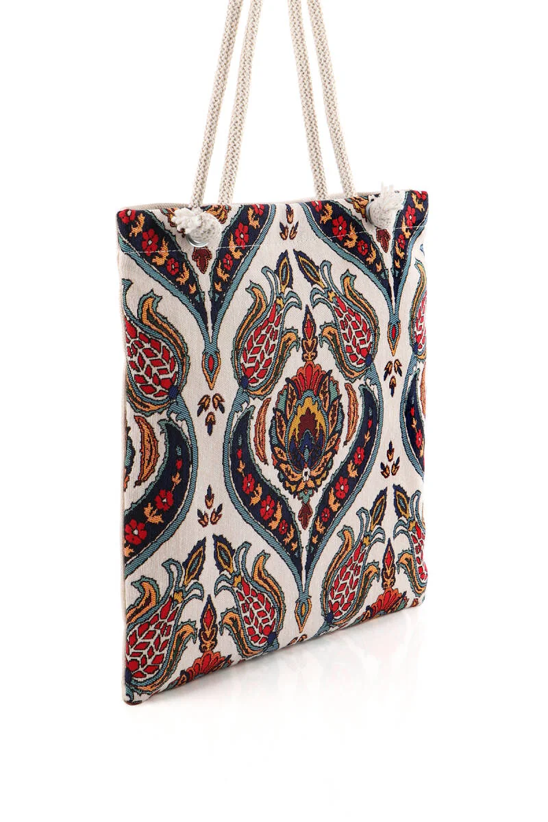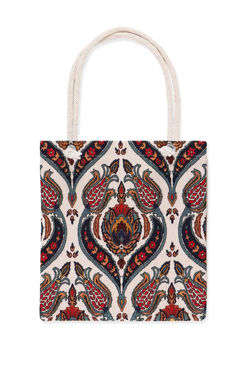The Gobelin Shoulder Bag with Tulip Pattern is crafted in Bursa, Turkey. It combines intricate gobelin embroidery with materials like leather or fabric for a unique design. Measuring 35 x 40 cm, this bag is practical for everyday use and adds a touch of elegance to any outfit.