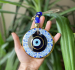 ? Evil eye charm is used as a protection wall decor. You can place this large evil eye wall hanging in your home or office. Nazar can be a great housewarming gift. This amulet is also perfect for wall decor.