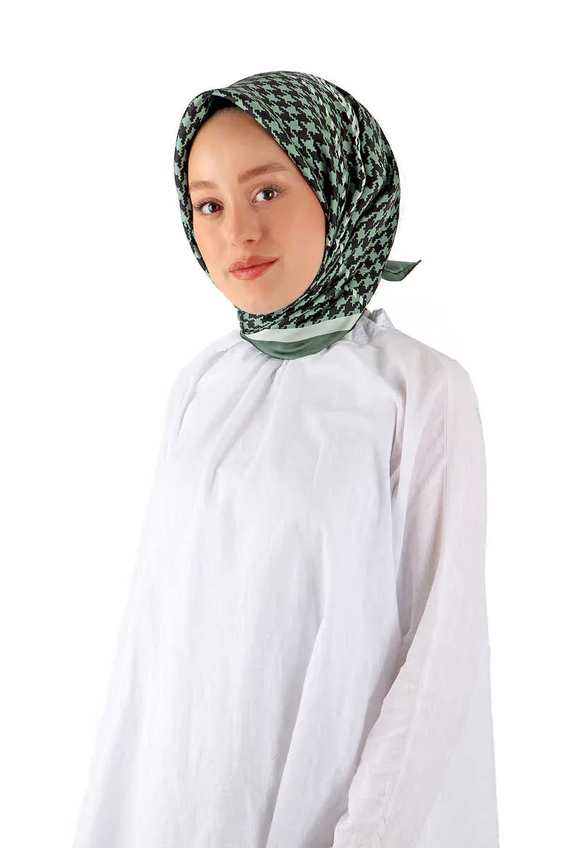 The Green Line Houndstooth Pattern Twill Silk Scarf offers a touch of elegance and style. Crafted from 100% silk, this scarf provides a luxurious feel and comfort. Measuring 90×90 cm, it is versatile for various styling options. Originating from Bursa, Turkey, this scarf combines traditional craftsmanship with contemporary design.