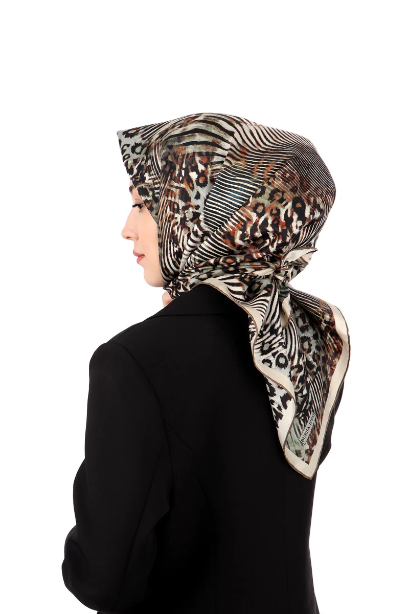 Enhance your style with the Green Zebra Leopard Pattern Twill Silk Scarf. Inspired by nature, this scarf combines classic and bold elements to complement various outfits. Crafted in Bursa, Turkey, it is made from 100% twill silk and measures 90 x 90 cm, providing ease of use and versatility.