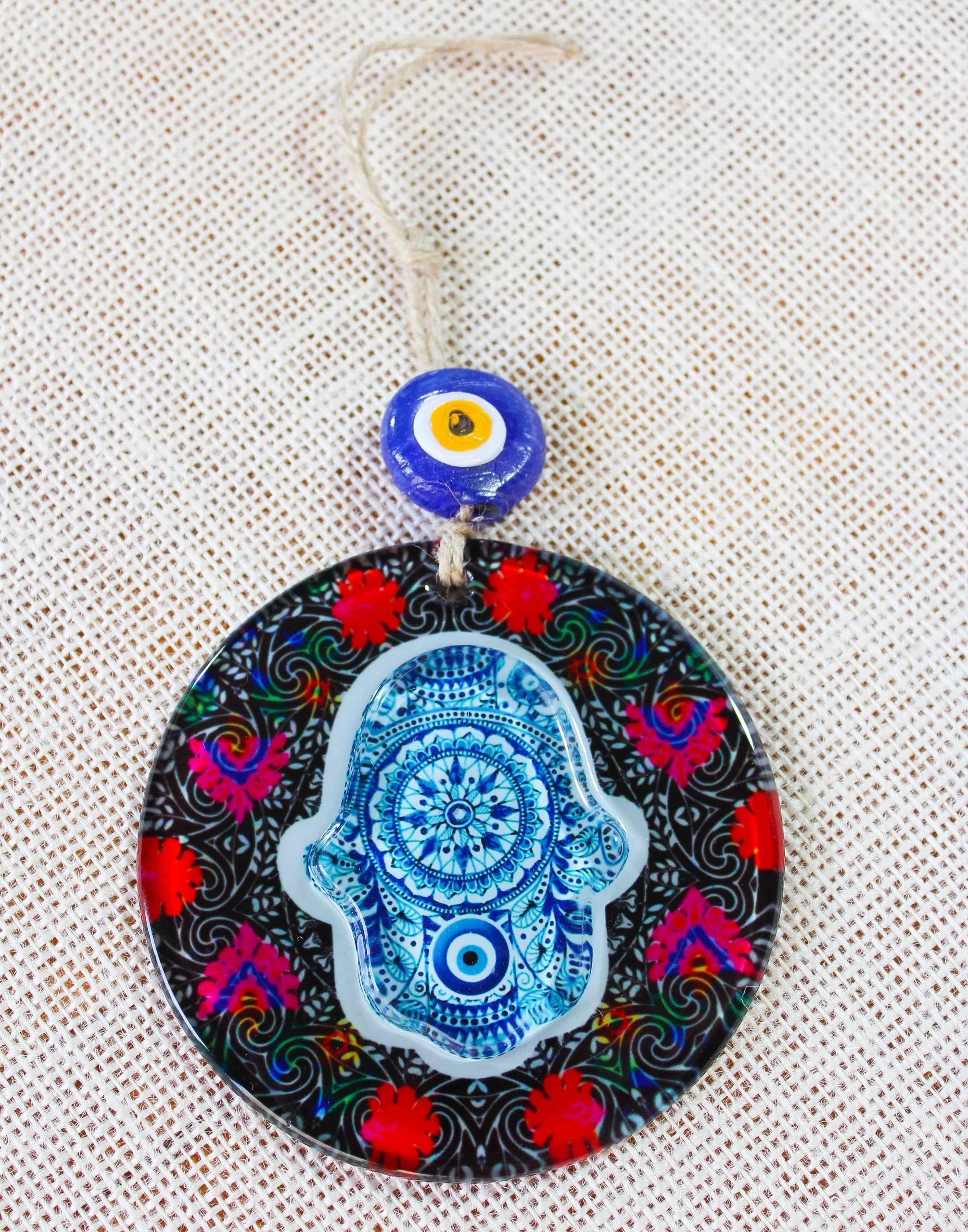 Throughout history, evil eye beads and Hamsa Hand believed to protect human beings from bad eyes. The eye figure has been recognized as a powerful talisman, defying the evils in most cultures and religious beliefs. Let it change the ambience of the place you want with this unique piece from our collection
