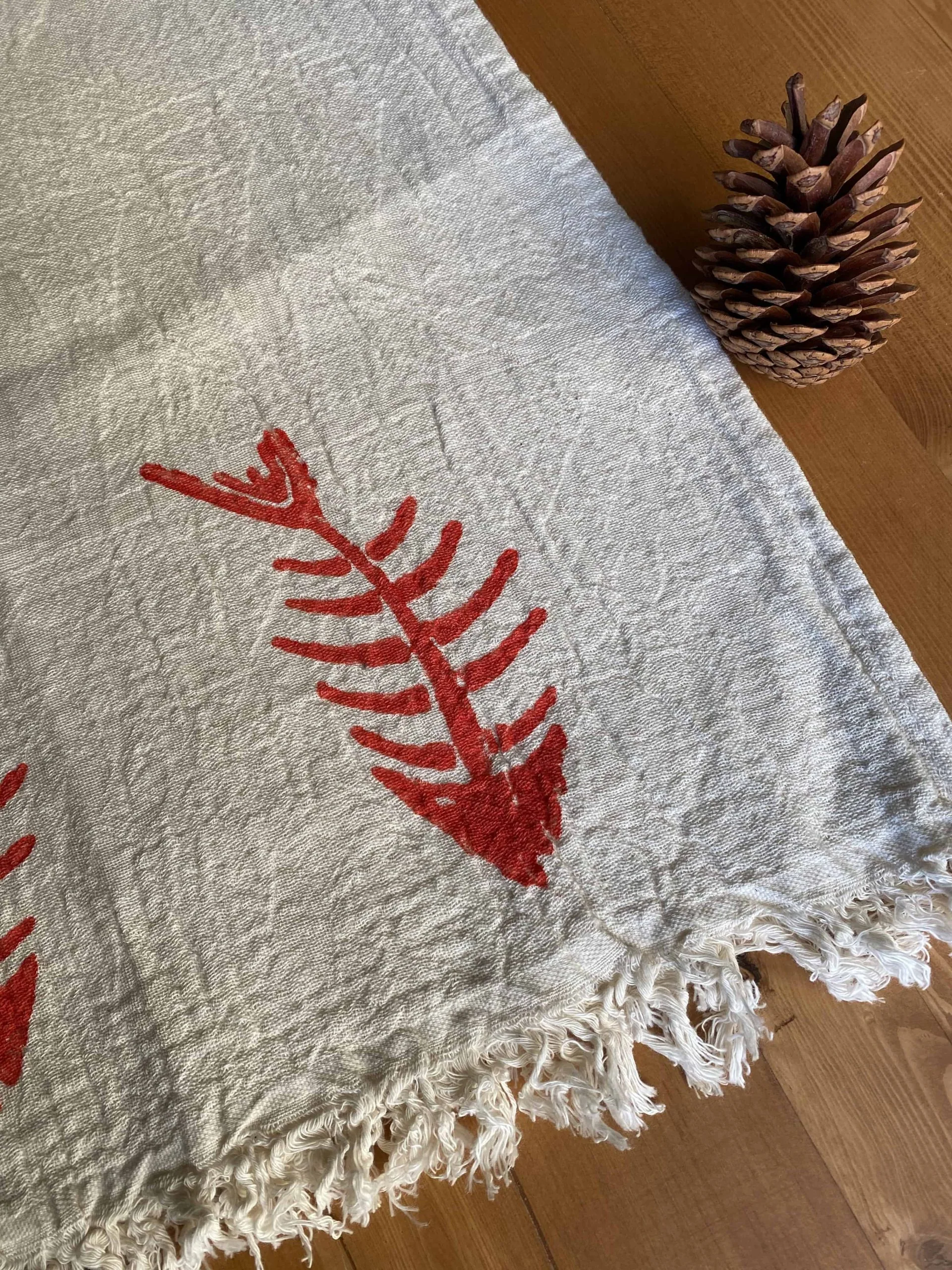 The fringes are all hand tied with exposed threads adding to the heirloom appeal of this towel. Our peshtemals are super absorbent and so soft to be used as a bath towel. Its natural texture and elegant look would also make it your favorite throw on your couch. This truly is one of the most versatile pieces you could own