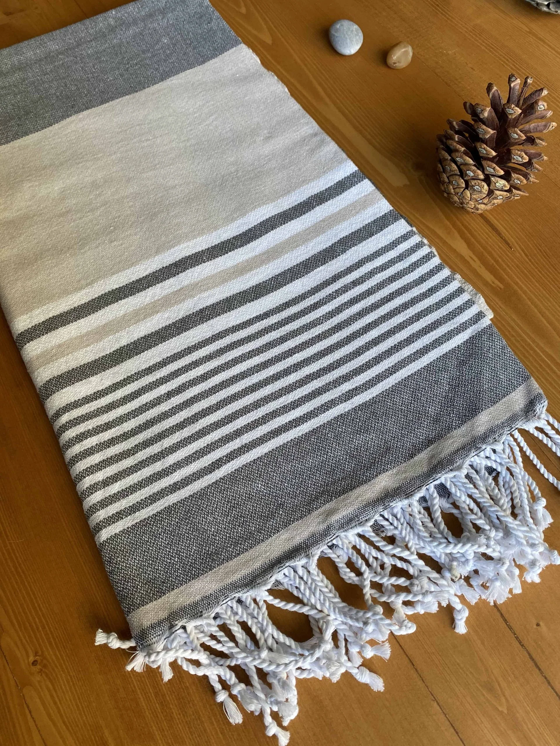 The fringes are all hand tied with exposed threads adding to the heirloom appeal of this towel. Our peshtemals are super absorbent and so soft to be used as a bath towel. Its natural texture and elegant look would also make it your favorite throw on your couch. This truly is one of the most versatile pieces you could own