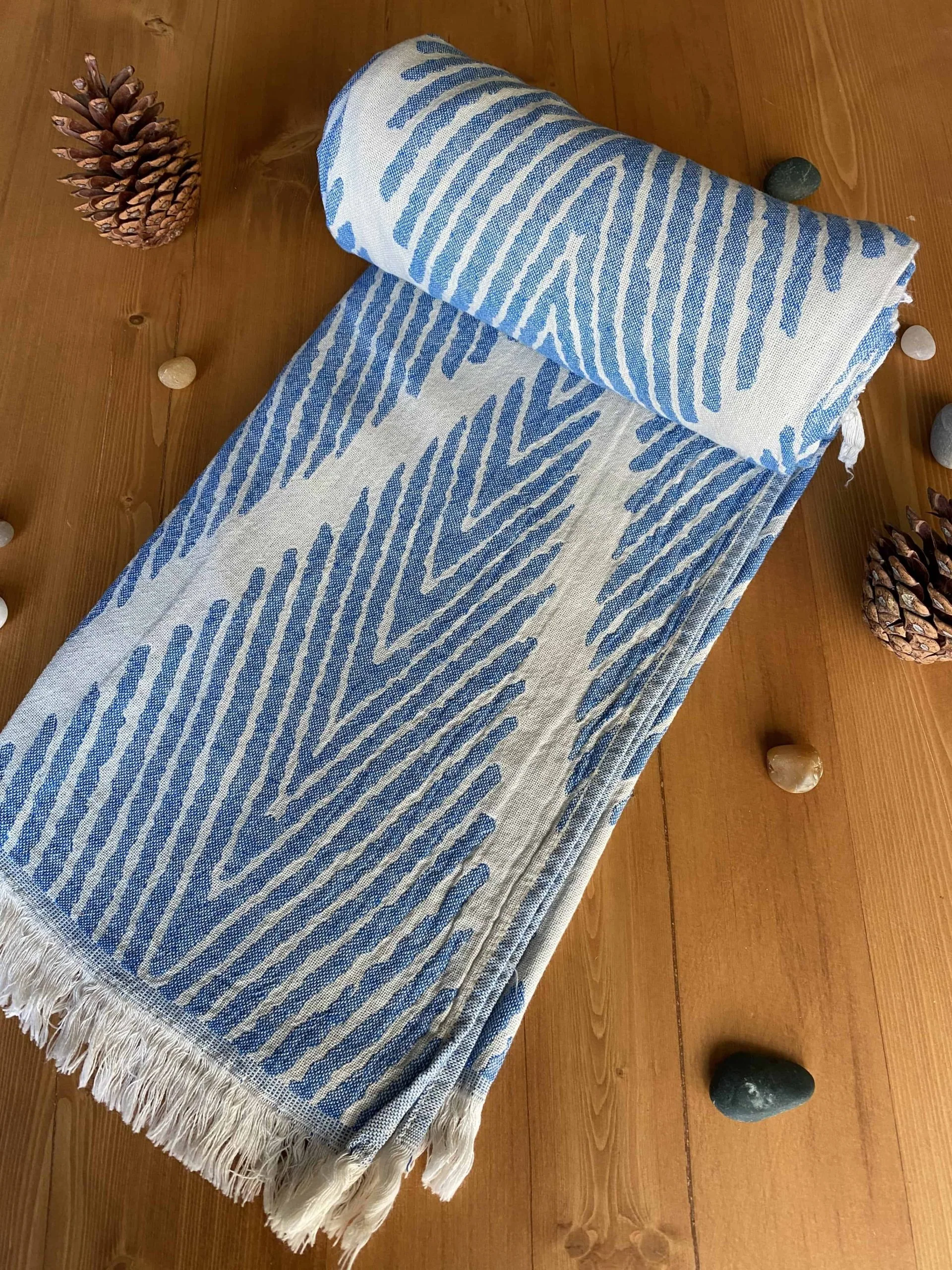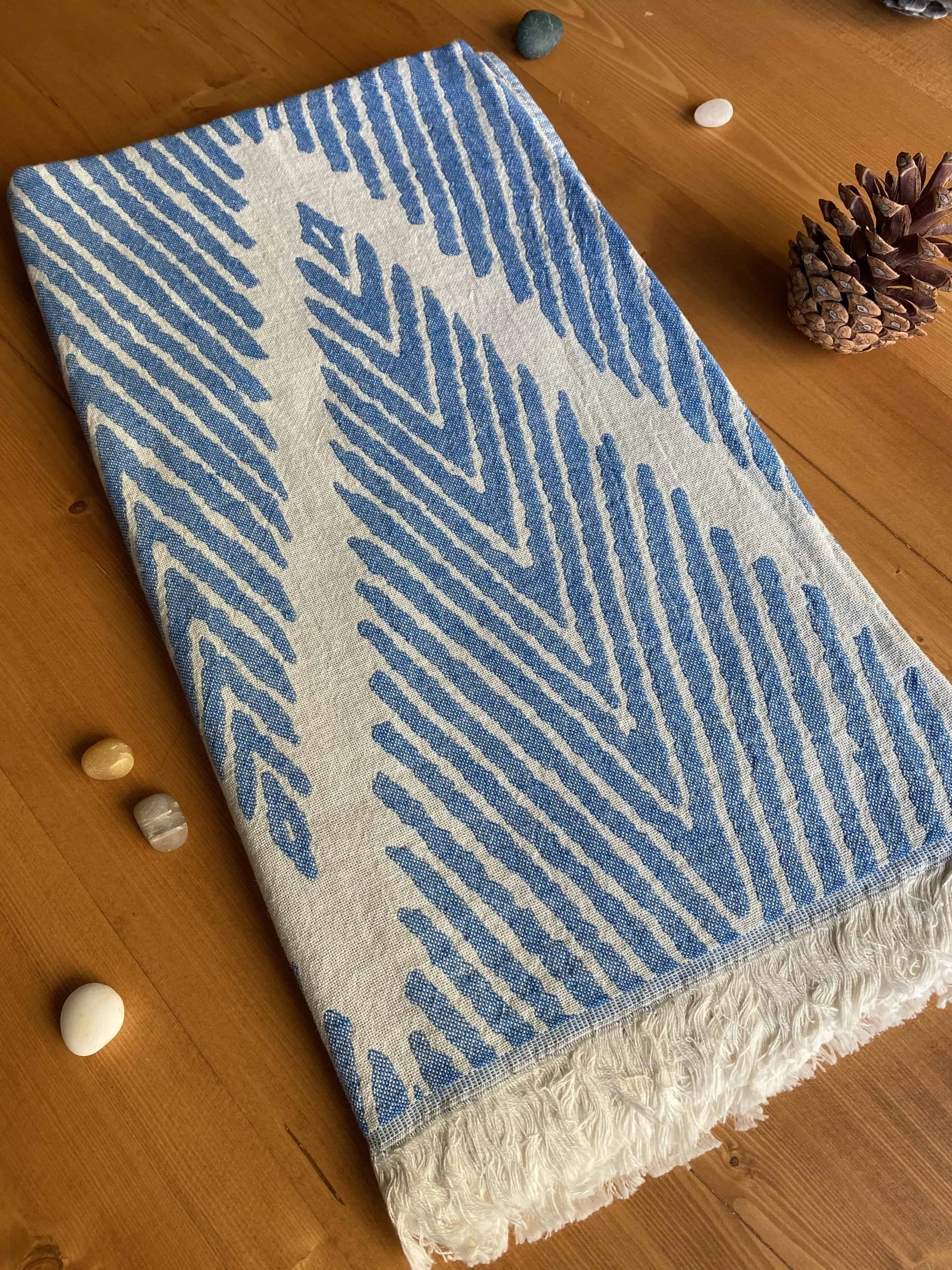 The fringes are all hand tied with exposed threads adding to the heirloom appeal of this towel. Our peshtemals are super absorbent and so soft to be used as a bath towel. Its natural texture and elegant look would also make it your favorite throw on your couch. This truly is one of the most versatile pieces you could own