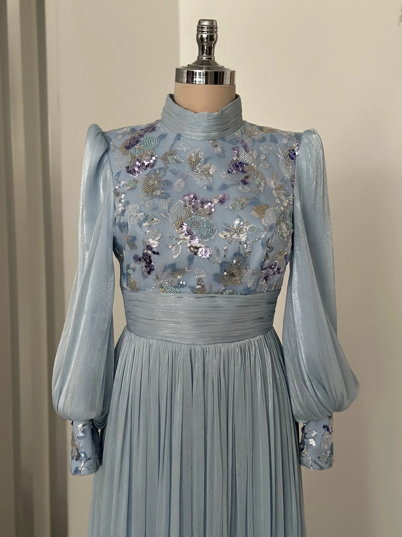 I recently wore this beautiful evening dress to my niece’s engagement, and I couldn’t be happier with how elegant and comfortable it felt. The design is both modest and enchanting, perfect for a special occasion. Thank you for creating such a lovely piece!