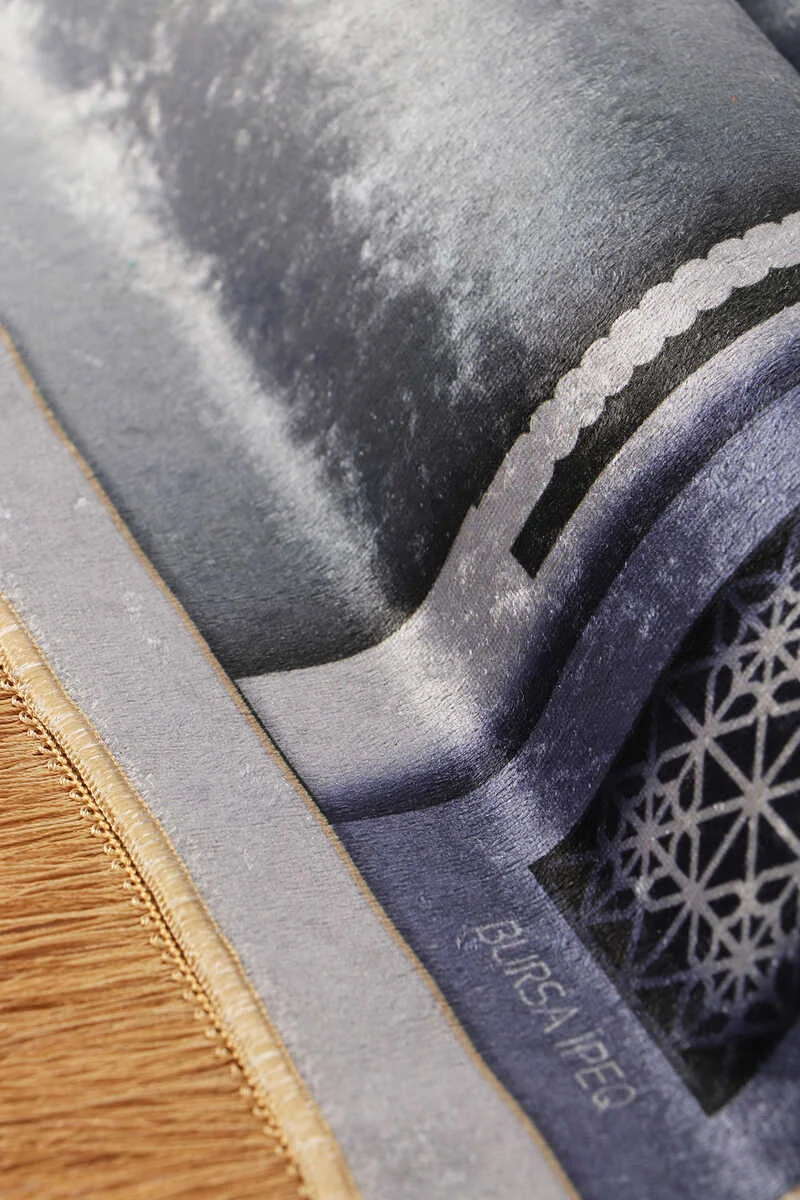 This Indigo Velvet Prayer Rug features a silk-like texture and eye-catching colors, adorned with traditional Turkish motifs and tile patterns. It is designed for both decorative appeal and practical use, measuring 65×115 cm. Originating from Bursa, Turkey, this rug combines cultural heritage with functionality.
