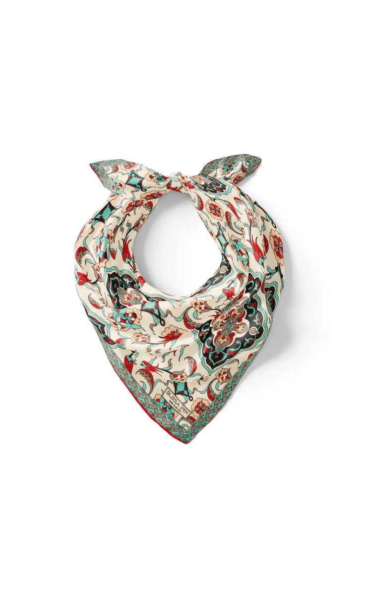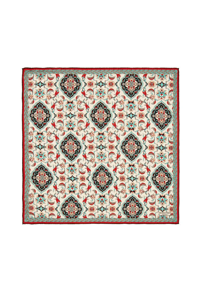 The Ivory Black Tile Tulip Pattern Silk Handkerchief combines traditional Turkish motifs with modern design elements. Crafted in Bursa, Turkey, this handkerchief is made from 100% silk, offering a soft and luxurious feel. Measuring 55×55 cm, it provides both comfort and elegance for everyday use or special occasions.