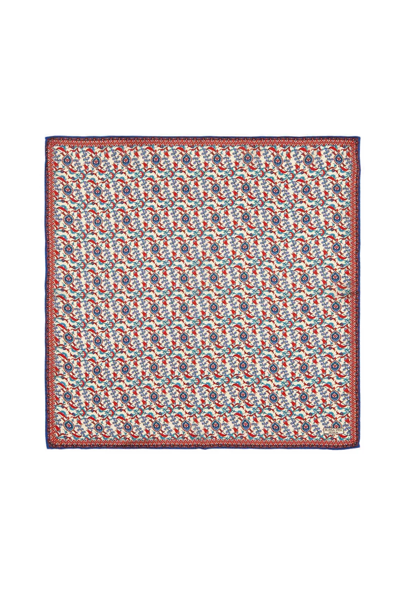 Ivory Blue Vine Tulip Pattern Silk Handkerchief