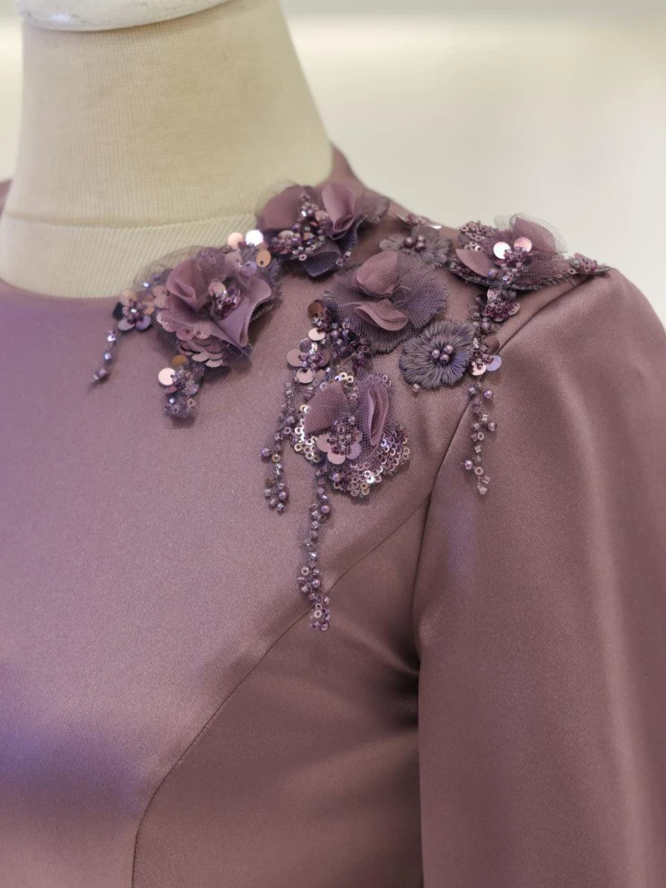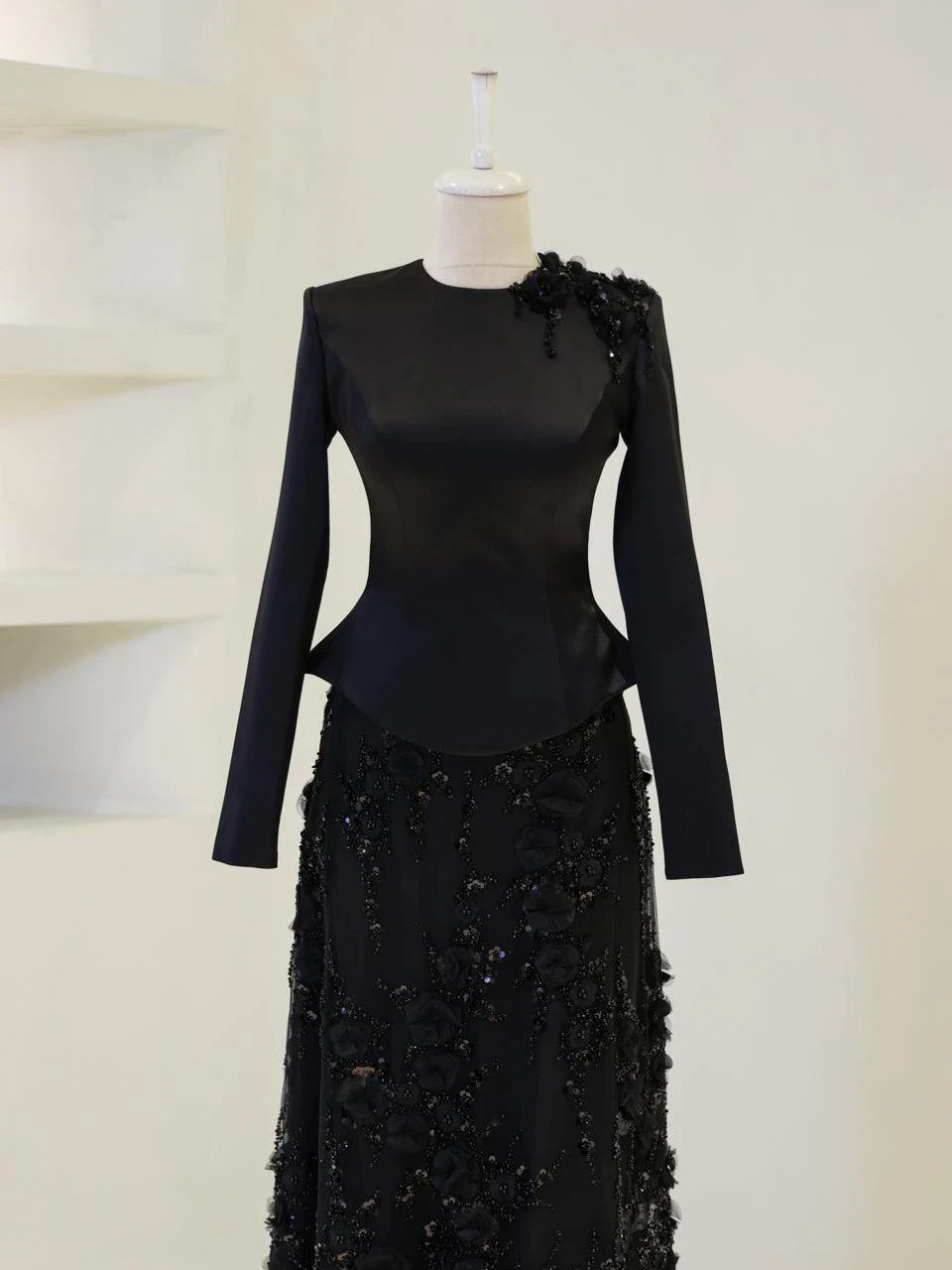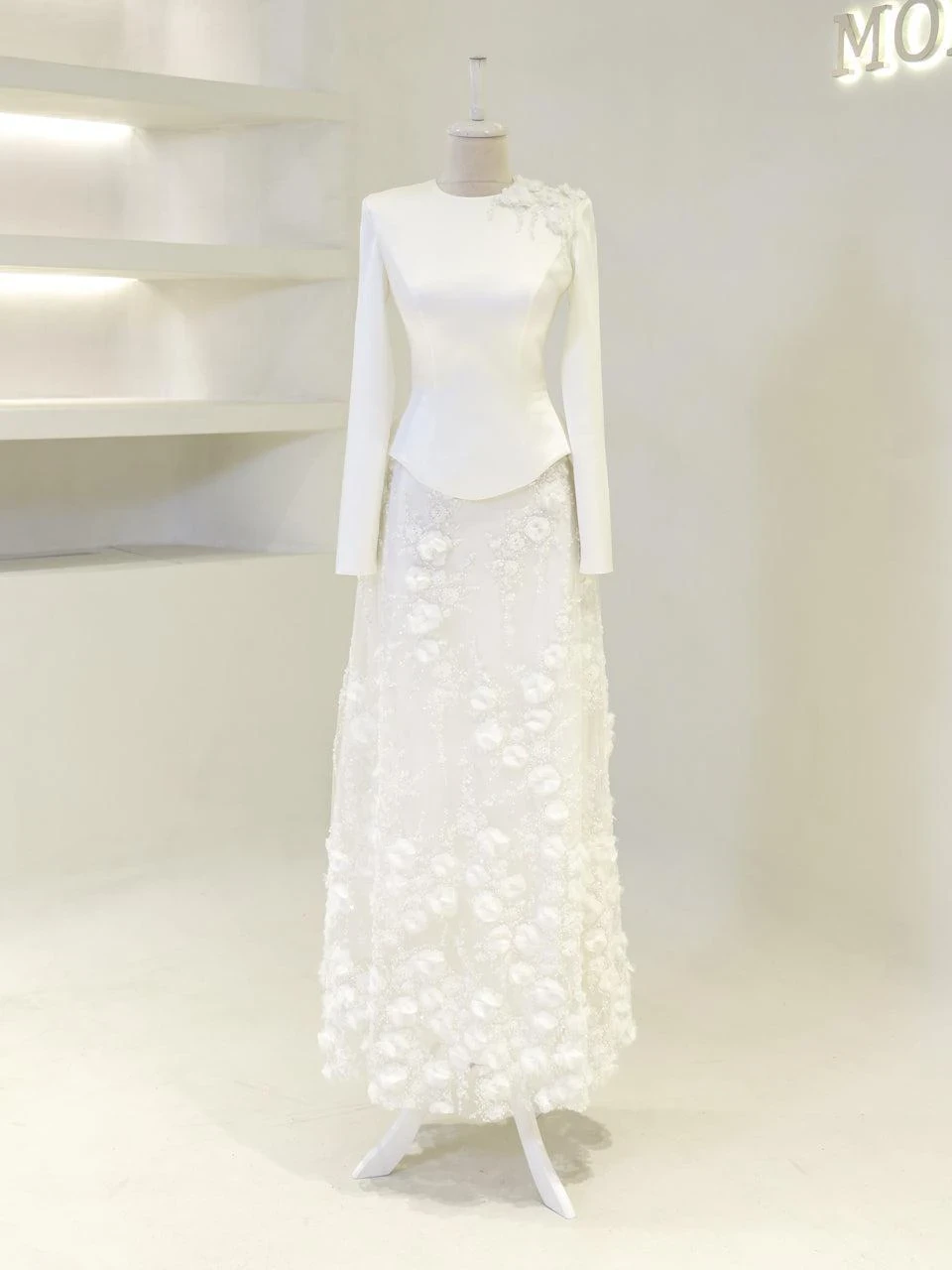 The Jessica Modest Outfit Set is designed with precision to offer a perfect fit. The set includes a skirt with a length of 120 cm and a top with a length of 50 cm. The skirt is made from tulle fabric, while the top is crafted from satin. The outfit is equipped with a back zipper closure and features non-adhesive embellishments. It is fully lined and includes a built-in bust pad. The skirt has an A-line silhouette. Please note that due to the limited stock and exclusive design of this model, exchanges and returns are not available. For size and measurement inquiries, feel free to contact us.