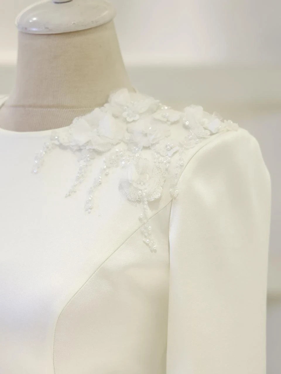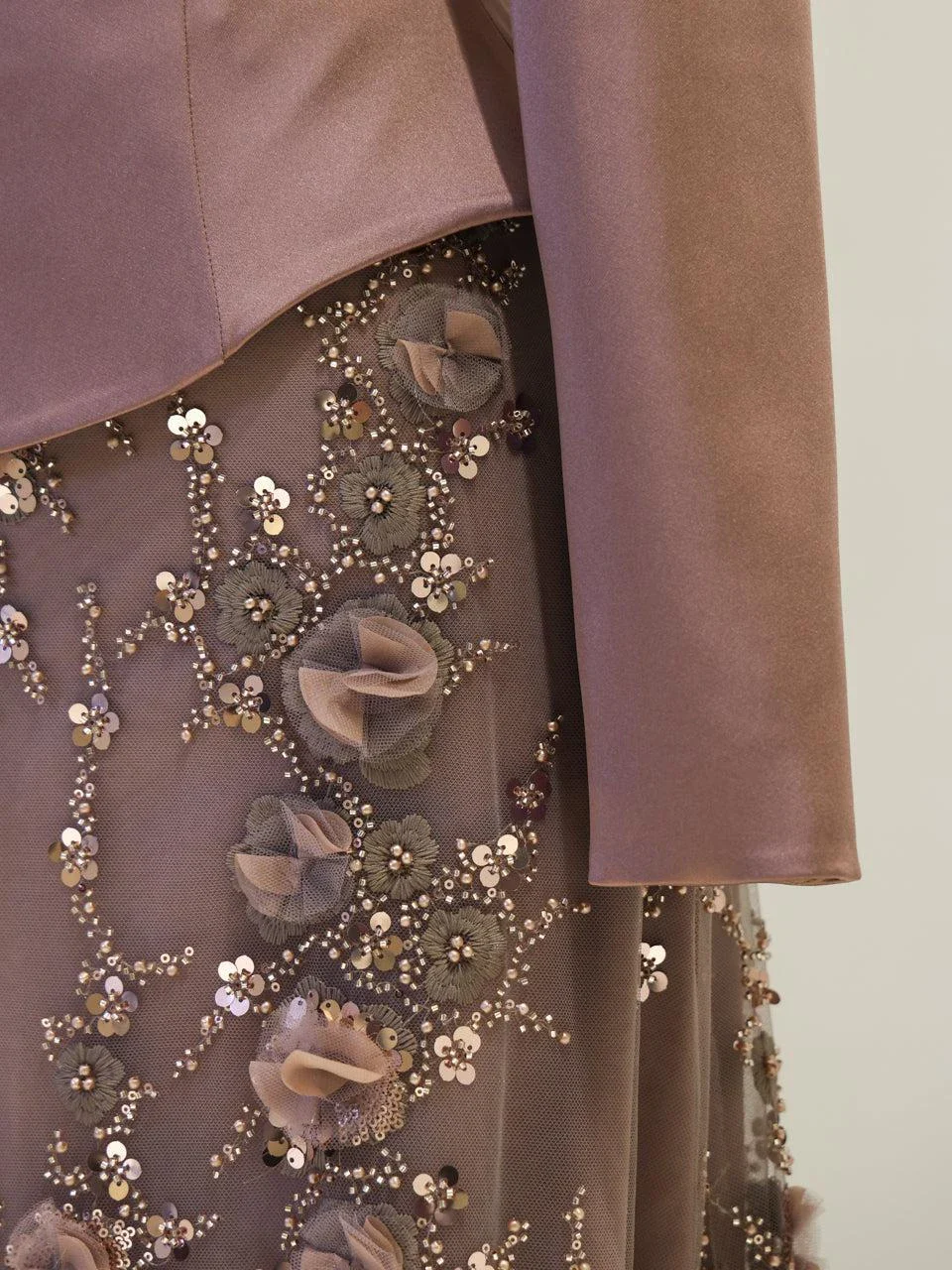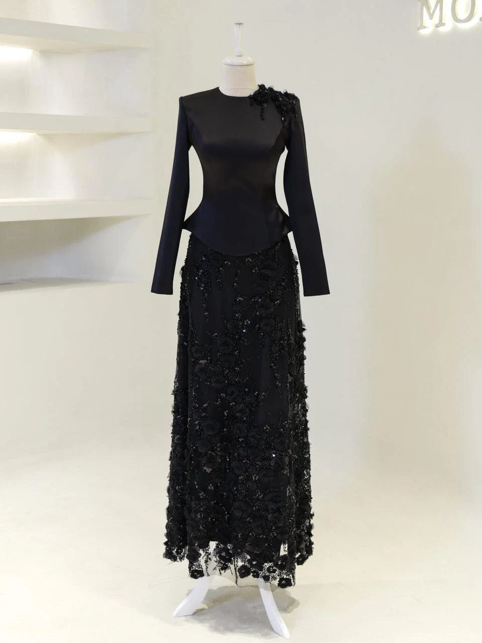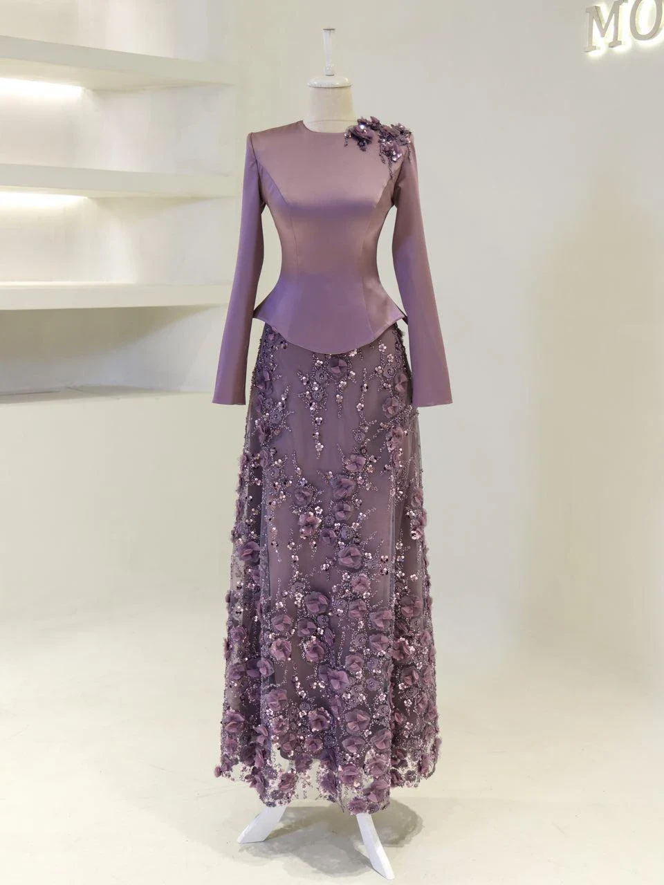 The Jessica Modest Outfit Set is designed with precision to offer a perfect fit. The set includes a skirt with a length of 120 cm and a top with a length of 50 cm. The skirt is made from tulle fabric, while the top is crafted from satin. The outfit is equipped with a back zipper closure and features non-adhesive embellishments. It is fully lined and includes a built-in bust pad. The skirt has an A-line silhouette. Please note that due to the limited stock and exclusive design of this model, exchanges and returns are not available. For size and measurement inquiries, feel free to contact us.