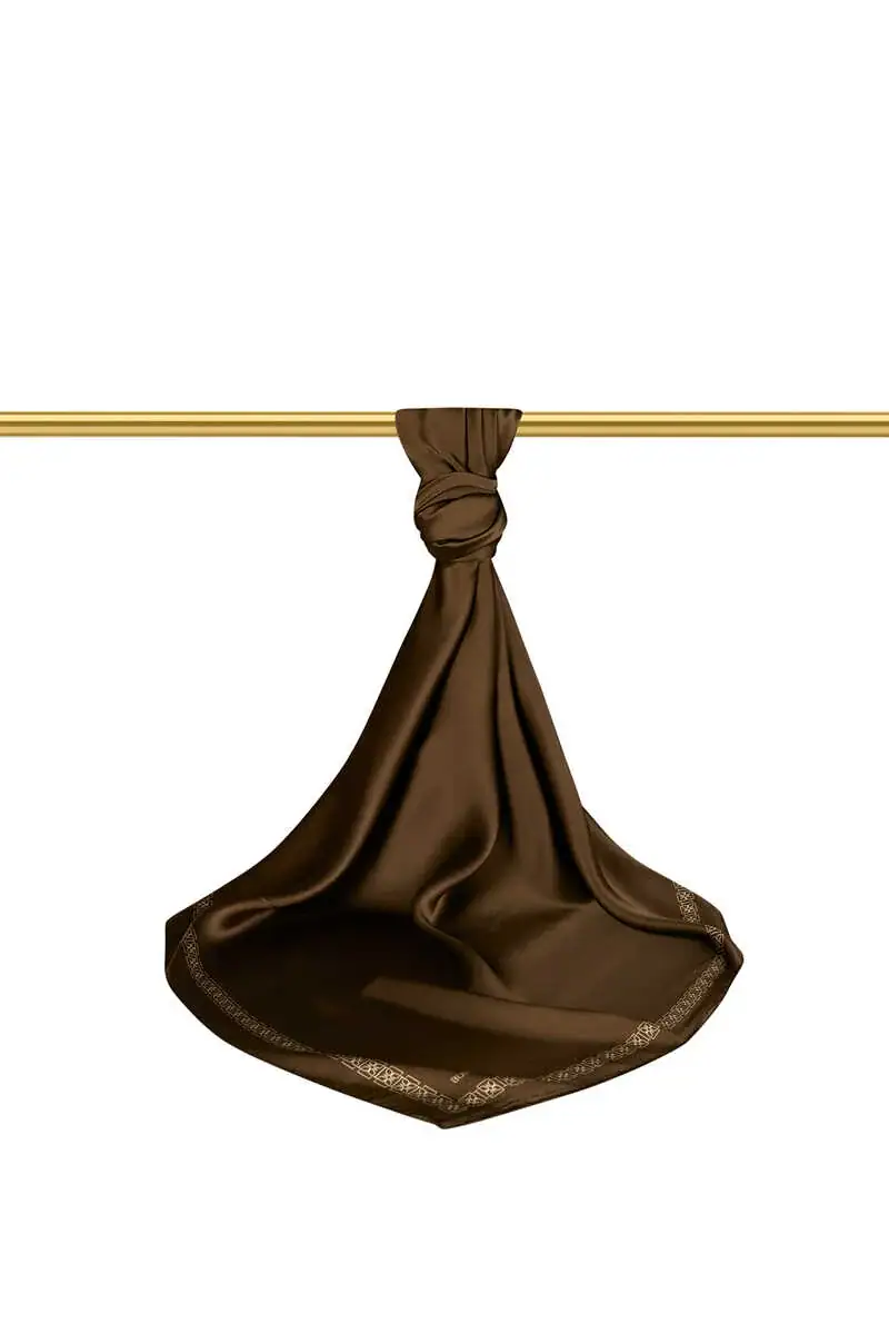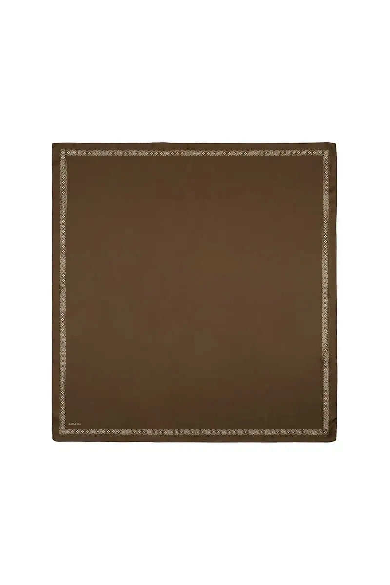 This khaki silk scarf, adorned with a butterfly border pattern, brings simplicity and elegance to any outfit. Crafted in Bursa, Turkey, it is made from 100% silk, ensuring both quality and comfort. The scarf's dimensions of 90×90 cm make it versatile for various styles and seasons. Its minimalist design appeals to those who appreciate understated elegance.