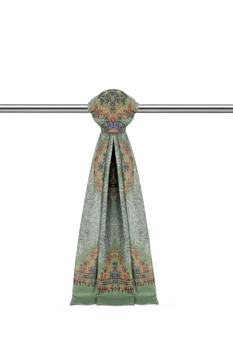 The Khaki Ethnic Pattern Soft Scarf is an accessory that enhances your style in every season. Made from viscose fabric, this scarf measures 75 x 190 cm, offering ease of use. Its soft texture and lightweight design make it suitable for both everyday wear and special occasions. Originating from Bursa, Turkey, it complements various outfits effortlessly.