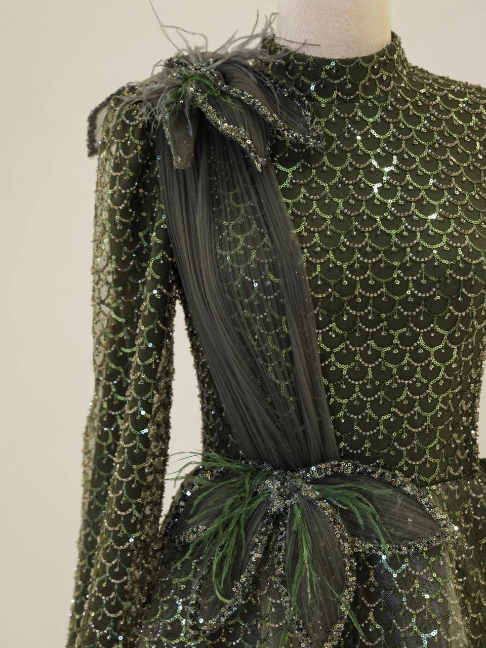 The Kitana Modest Evening Dress offers a classic and elegant look with its tulle fabric and full-length design. The dress has an average front length of 145 cm and an average back length of 160 cm, providing a graceful silhouette. It includes a lining for added comfort and features a back fastening. Unlike some dresses, the embellishments on this dress are not glued, ensuring durability. The dress is designed with a voluminous skirt, adding to its sophisticated appearance. Please allow 5-7 days for preparation.